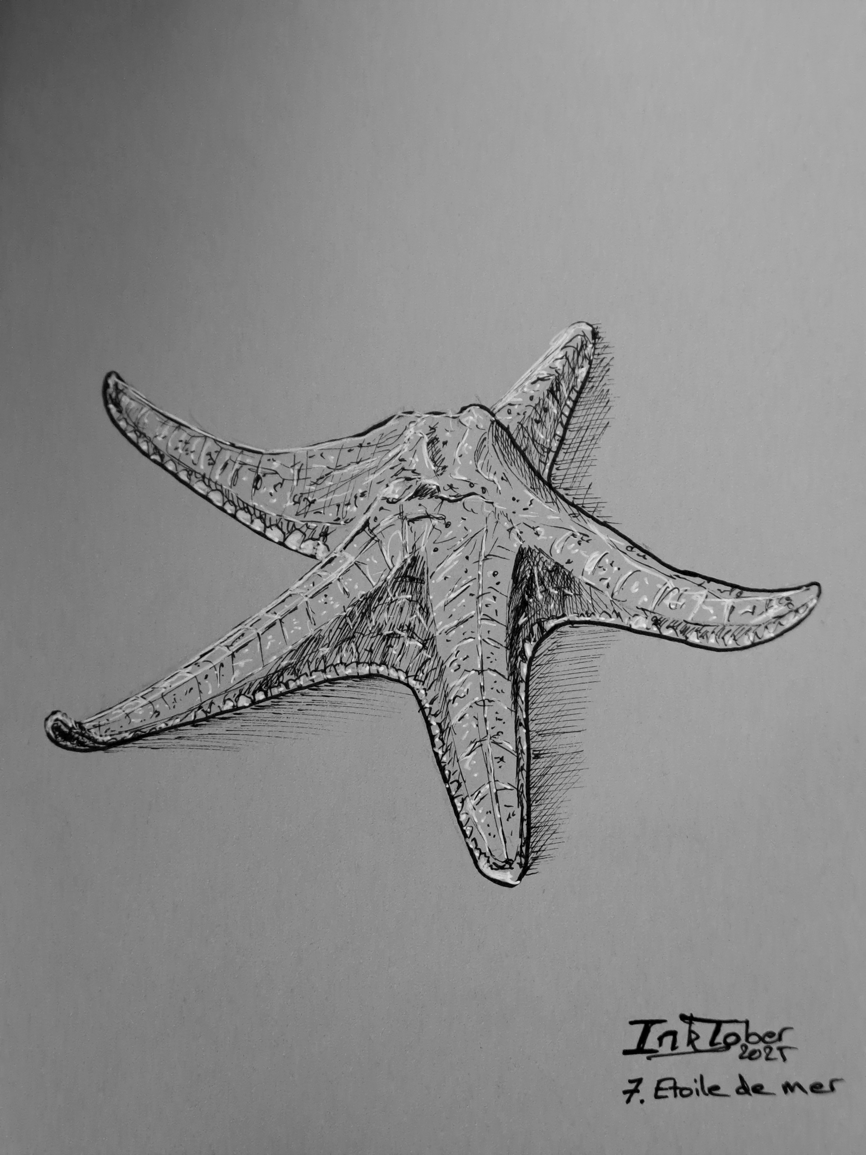 Hello à tous, merci à tous ceux qui m'ont mentionnée hier, ça fait plaisir ☺️ On reconnait ceux du matin à force... 😂 @Junetrès chouette idée, et belle réa, j'aime beaucoup les couleurs. @Shelterj'aime vraiment beaucoup, belle ambiance. @ApostroKetrès belle exécution, toujours aussi flippant... 😅 et voici mon étoile de mer : à la base j'avais décidé de bosser mon line art, inspirée par le beau travail de @Diamones, mais finalement, j'ai eu envie de le coloriser... du coup, je mets les deux ^^