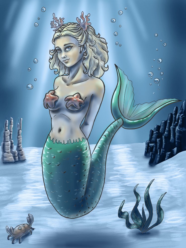 Hello! @Junemerci pour ce doux rappel des vacances 🙂 @ShelterBelle couleur, les reflets sur le personnage rendent bien aussi! @ApostroKeSâche que grâce à toi, je commence à développer une phobie des étoile de mer! (les mimics de Darks souls..🥰) @Julie LTrès belle sirène! Après juste permet moi de douter du confort d'un soutif en étoile de mer 😆 Pour ma part j'ai voulu lui donner un petit côté toxique ^^
