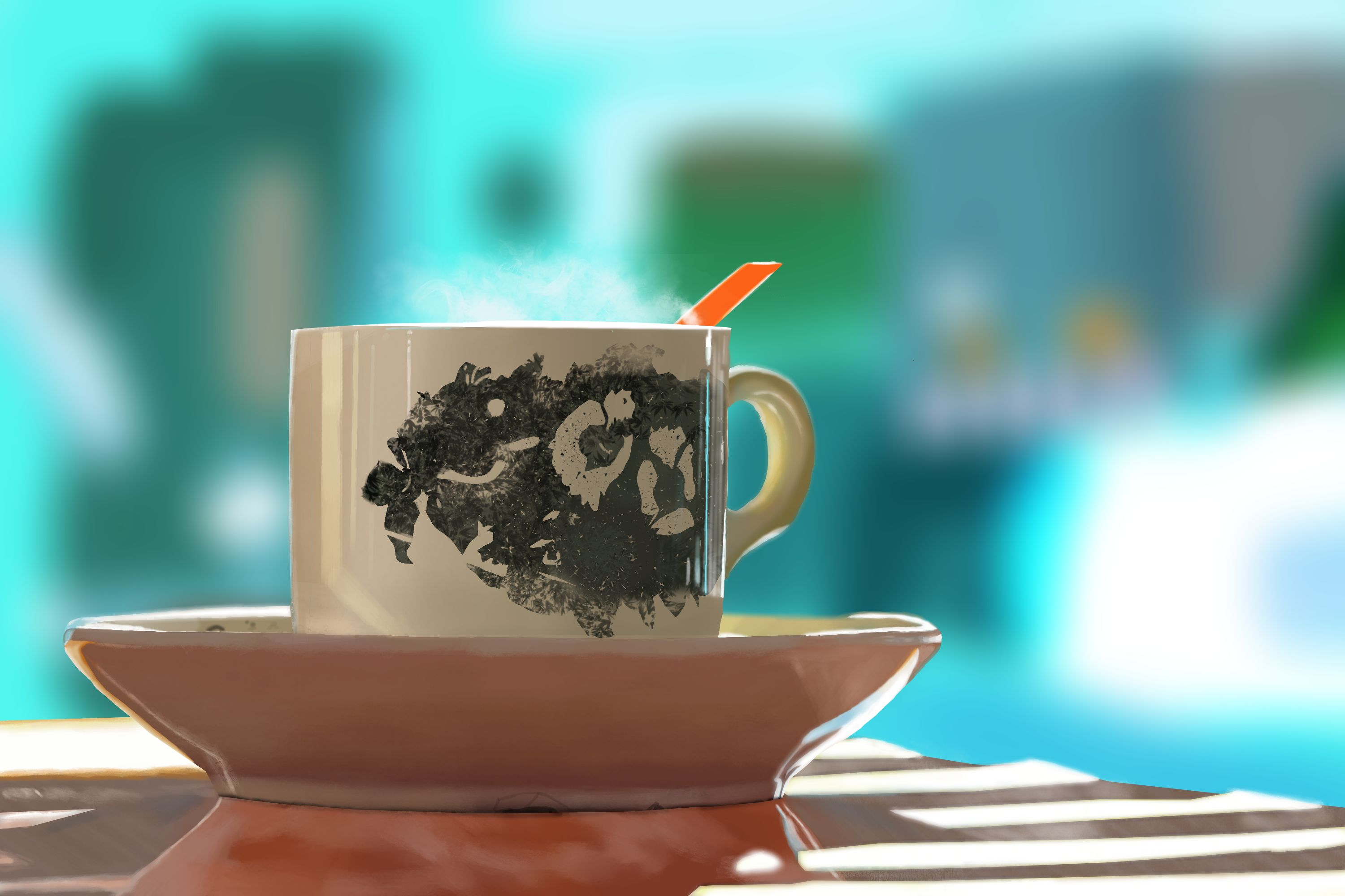 Bonsoir, voici mes retouches. Pour le poivron, j'ai essayé de blend sur les bords le reflet blanc avec un effet crayon. Le truc, c'est qu'en utilisant un brush qui blend ça "floute" la texture des couleurs et ça enlève la netteté des bords, notamment les arrondies des différents quartiers du poivron. Je ne sais pas trop comme faire pour corriger cela, à part refaire certaines parties du poivron de zéro. Pour la tasse et le monstre j'ai suivi tes rectifications. Idem pour la branche même si je ne suis pas sûr de la lumière sur la branche. Encore merci pour ces retours !
