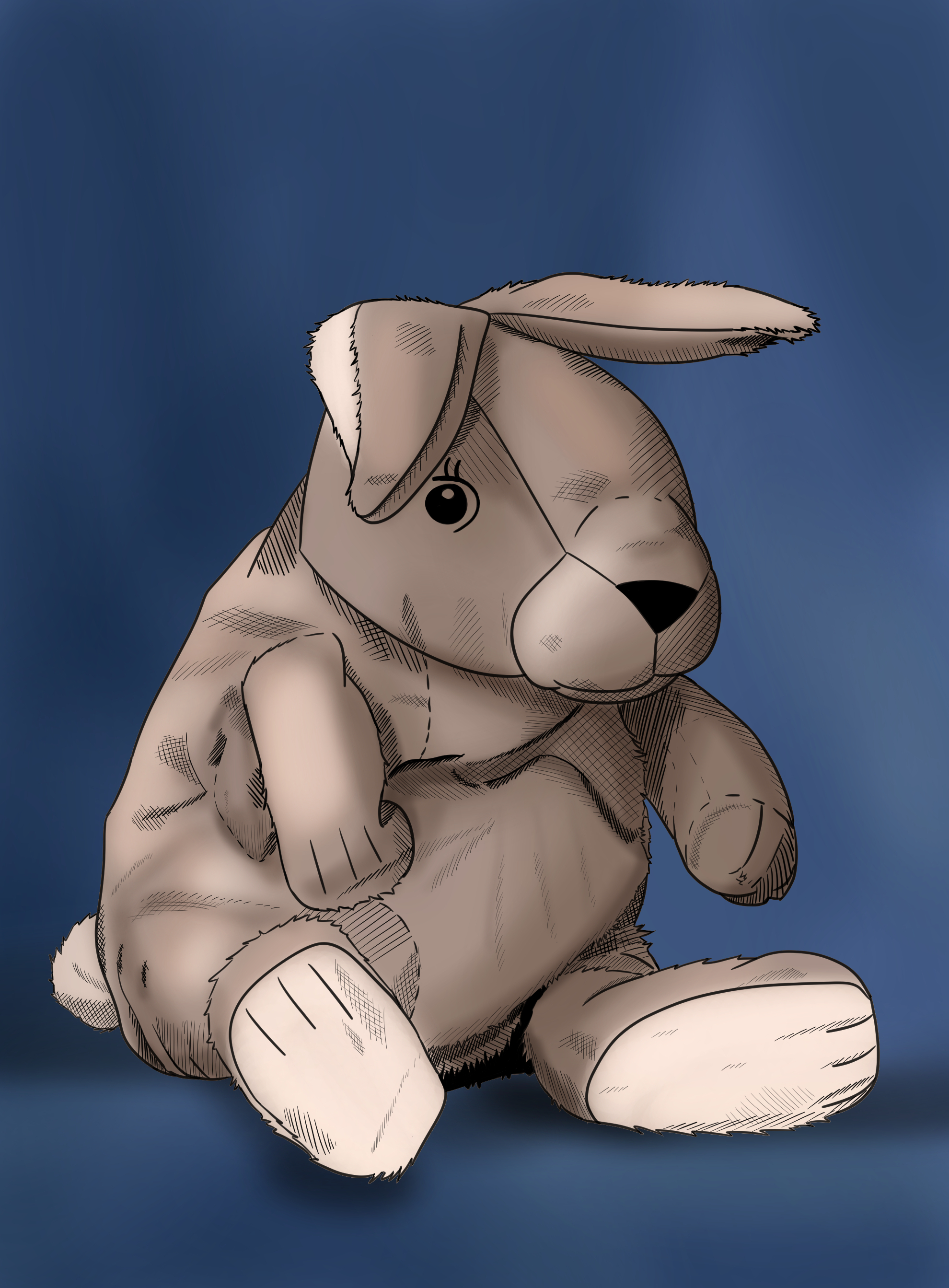 Salut ! C'est une super réalisation pour un début ! Remarques constructives : J'ai deux points dont je peut te faire par. Ne connaissant pas ton outils je vais te partager un palliatif. (ma première tablette n'avait pas la capacité de prendre en compte la pression du stylet d'où le palliatif) Premier point : tes tracé sont trop fort. Tes couleurs sont bien placées. On voit bien les dégradés de couleurs pour attiré le regard et les variation plus on s'éloigne. Mais tes tracés sont très intenses. ça manque de dégradé. Si ta tablette le peut, joue sur la pression du stylet. ça te permettra de déposer un peu moins de couleurs à chaque passage. Et tu peut en plus jouer avec l'opacité de tes brush. Aussi, tu peux commencer avec sur un premier calque la lumière bleue, puis sur un second les dégradé d'ombres. Comme ça tu peux toujours effacer ton calque si ça ne te convient pas. Aussi, j'ai trouvé plus facile la réalisation des ombres/Dégradé avec le brush soft 75 plutôt que celui avec de la texture. Et en augmentant la taille du brush dans les paramètre, j'ai pu atteindre la taille que Spartan utilise dans sa vidéo. Je te conseillerais la même manoeuvre. Deuxième point : L'hameçon n'est pas "clean". On voit les tracé que tu as fais l'hameçon en plusieurs coup de brush, ce qui lui donne un aspect saccadé. Tu peux très bien faire un premier tracé grossier avec le brush et l'affiné avec soit le masque (dans les calques), soit la gomme. Tu arrivera à avoir un rendu plus finis. Globalement c'est une bonne base ! Bien meilleure que ce que j'ai pu faire au début. Pour un premier retour je m'arrête là. Mais si tu souhaite plus, je peu approfondir la lecture ! En tout cas tu es sur la bonne voie ! -