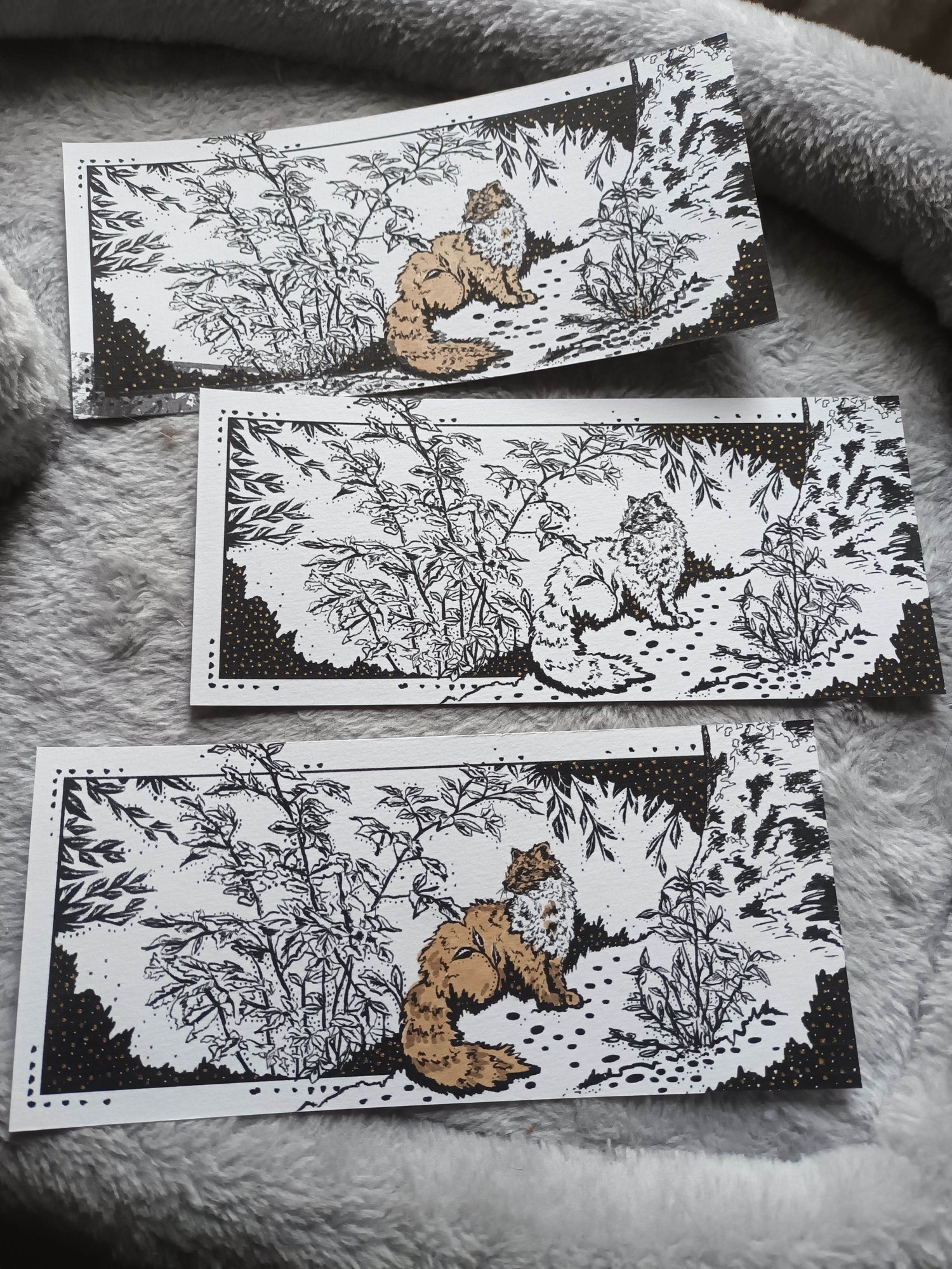 Bonjour à tous, Je me permets de venir vers vous pour récolter quelques retours sur mon projet. Il s'agit d'une illu pour faire des cartes de vœux. L'impression sera faite à la maison, c'est pour cela qu'elle restera en noir et blanc. J'ai aussi fait quelques tests pour l'impression sur papier épais, et des essais avec du feutre alcool et stylo doré. Je suis preneuse de tous vos retours et conseils, merci beaucoup !
