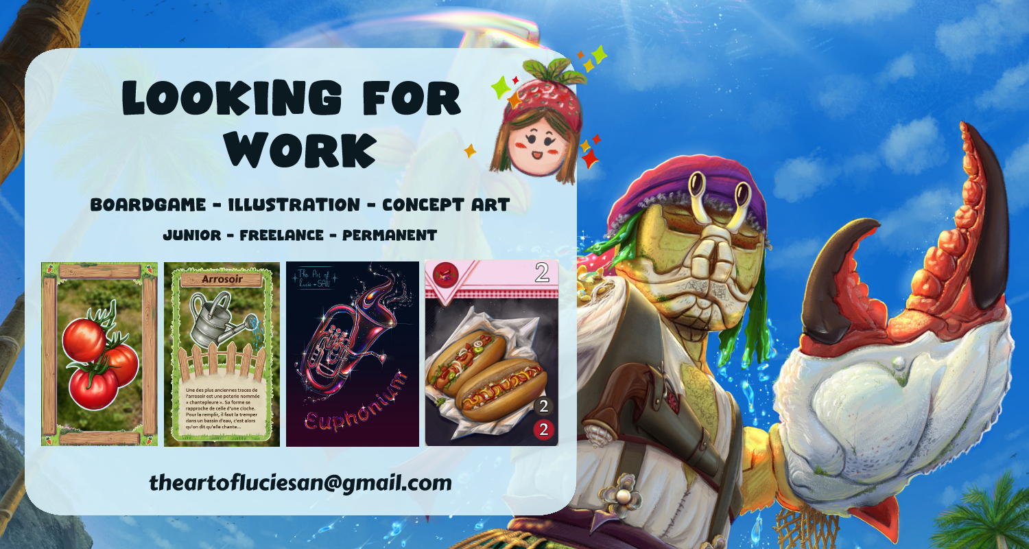 Bonjour à tous ! Mon objectif est de bosser dans le jeu de société (même si je serai aussi très heureuse d'avoir une expérience dans d'autres domaines de l'illustration 🤭) J'ai essayé de varier un peu mon portfolio, et de créer de faux projets de jeu. Mon dernier projet DreamGarden est le plus abouti, c'est celui que je pense mettre en avant. Pensez vous que mon portfolio est assez solide / cohérent ? Vous pouvez simplement checker mon profil DPS, ou alors carrément me donner votre avis sur mon site 🙏 https://digitalpainting.school/m/luciedhzsan https://payhip.com/TheArtofLucieSan Je pense démarcher via Linkedin, et je pense aussi me rendre à des festivals cette année, comme LudiNord, Flip, Geekfest Bordeaux ou Paris est Ludique… J'aimerais savoir si c'est la bonne marche à suivre, où s'il y aurait un autre moyen auquel je n'aurais pas pensé… 🙂 Pour Linkedin, en plus d'utiliser ce bouton : J'imagine que je dois trouver des responsables d'édition et leur envoyer un mp, ou c'est bizarre ? Peut-être aussi les contacter via leur site via un email plus général ? Je vous partage une bannière que j'ai faite pour Linkedin (en plus de démarcher activement) : Je vous avoue que ce n'est pas toujours évident de rester motiver, mais je m'accroche ! - Aujourd'hui