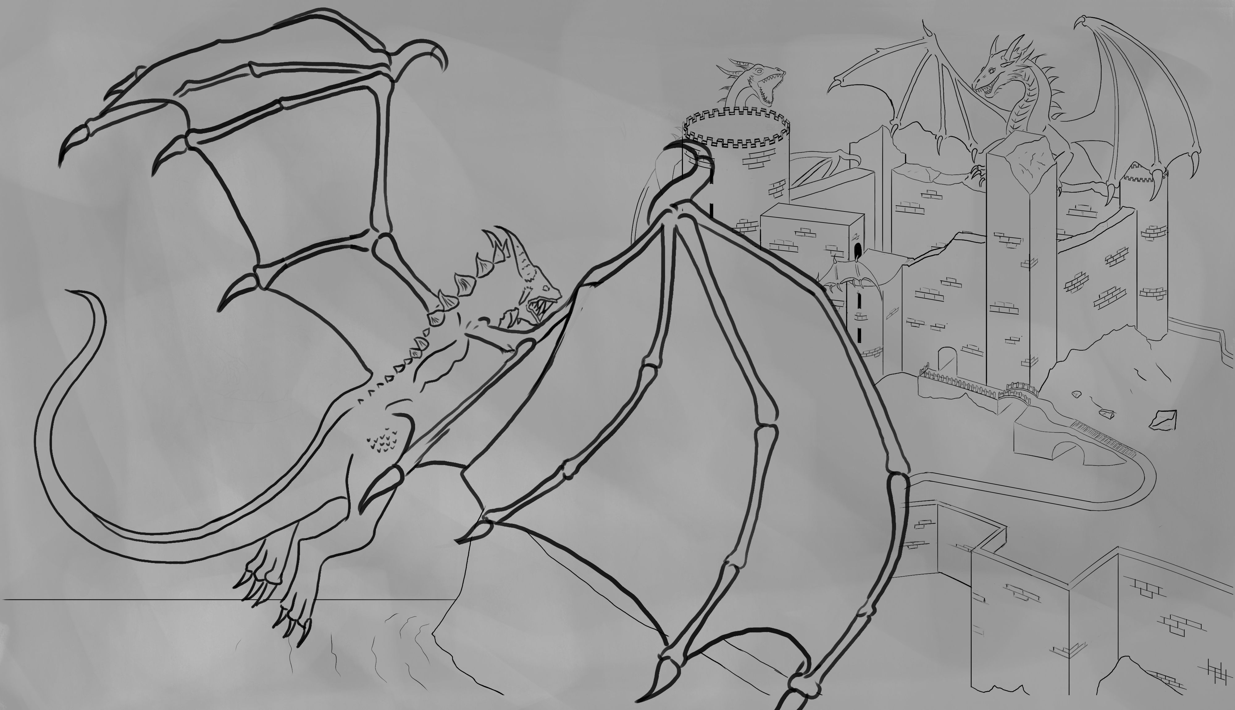 Voici le résultat de mes corrections. J'ai beaucoup d'hésitations quand au croquis avec les dragons je ne sais pas si celui au premier plan est vraiment bien placé. J'ai une preférence pour celui à la queue coupée. Bonne soirée 😃 -