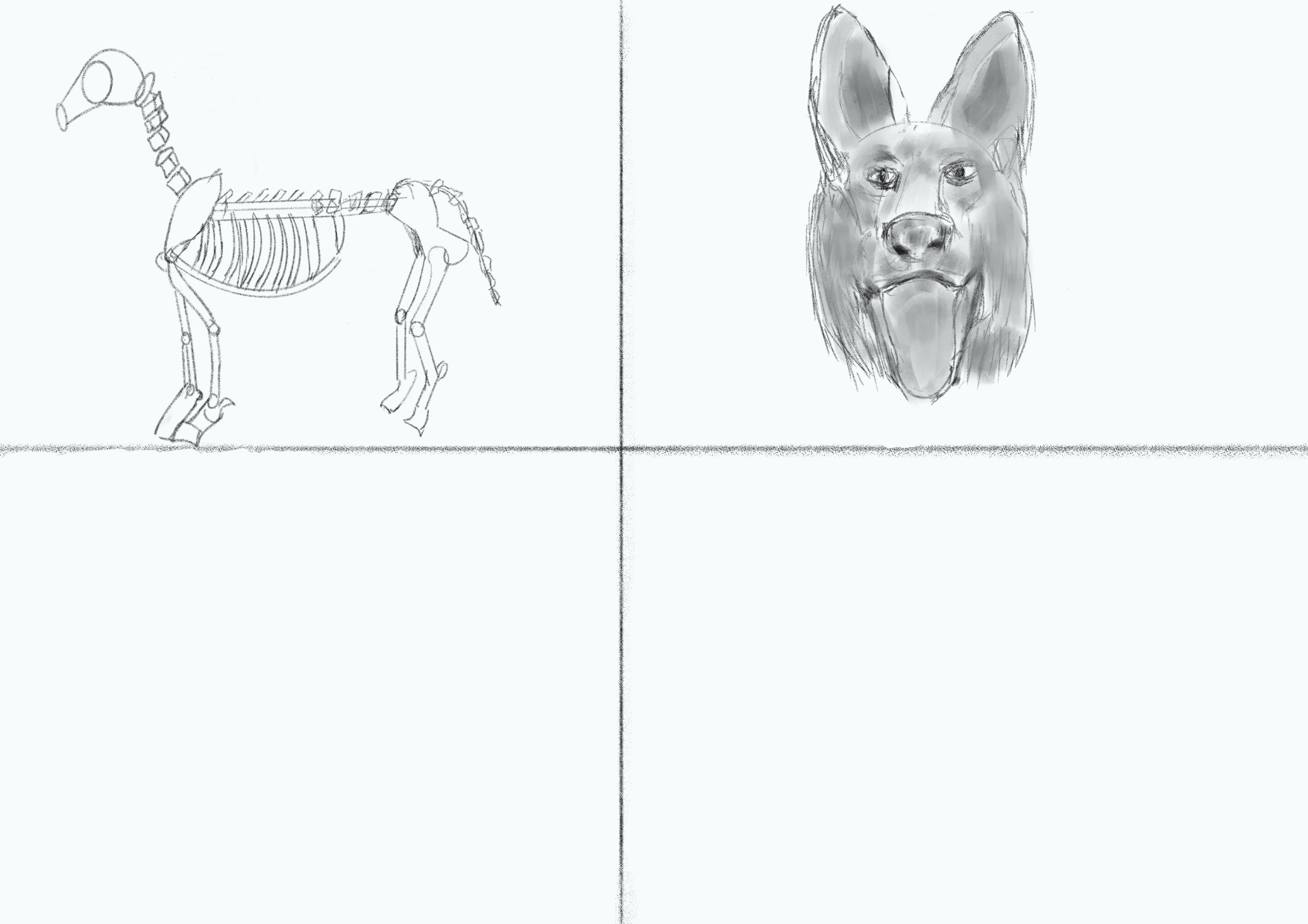 bonsoir à tous, Mercredi: premier dégrossissage du squelette d'un chien pour le défis de cette semaine, d'après un squelette trouvé sur google Jeudi: suite de mon étude mammifère avec cette fois la tête de chien -
