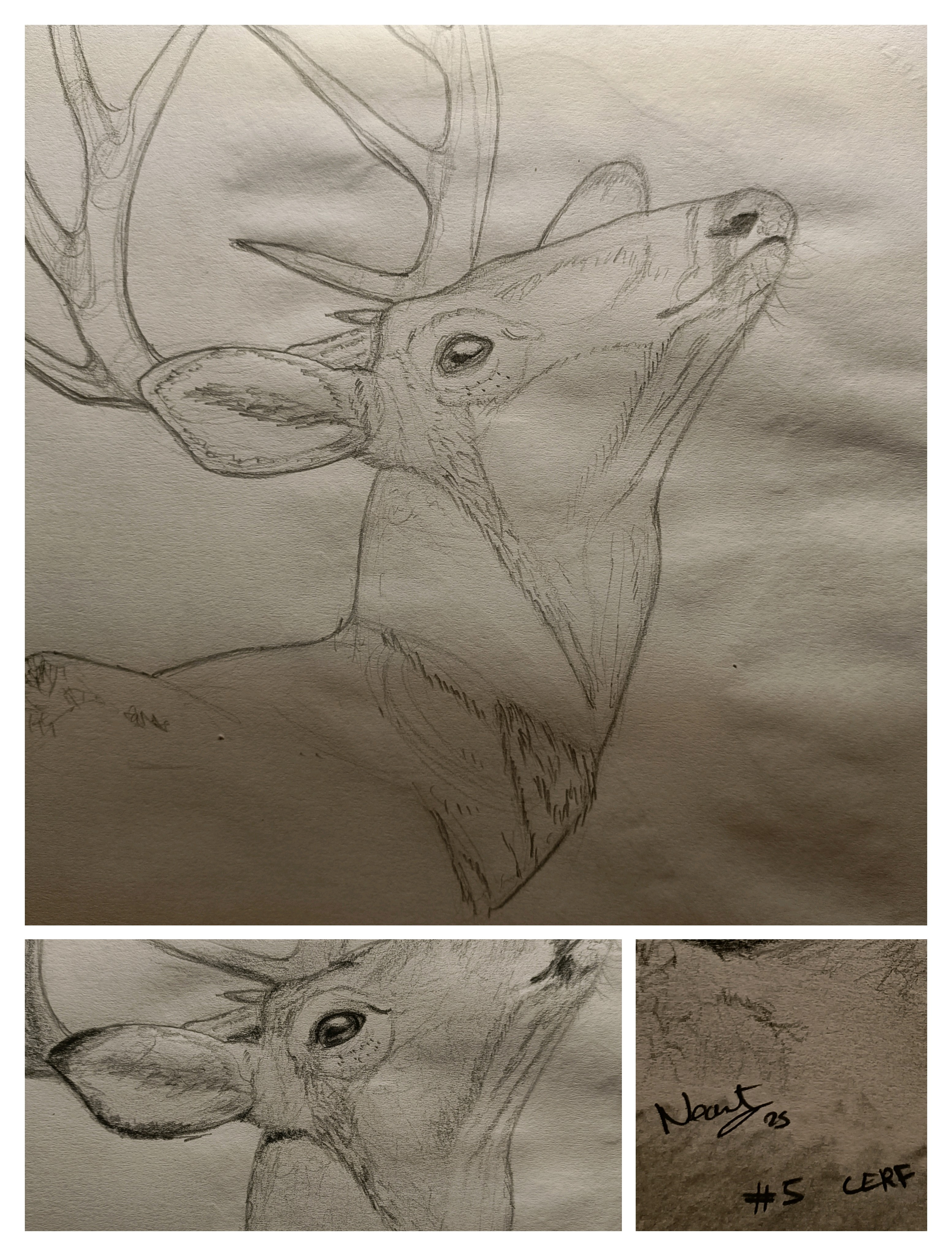 @Caro Vespera Ton cerf est bluffant ! Superbe 🙂 @1 neas J'adore les bois et la crinière que tu lui a donné ! @Guismo Superbe Cerf lunaire ! @Lodor J'aime beaucoup l'ambiance qui se dégage de ta clairière : on a l'impression que le cerf vient de nous remarquer et se demande s'il va décamper Pour ma part je me suis inspirée d'une photographie d'une revue animalière pour enfant dont le thème du mois est justement les cerfs (Salamandre junior, photo de Bracard). C'est plus une étude du coup !