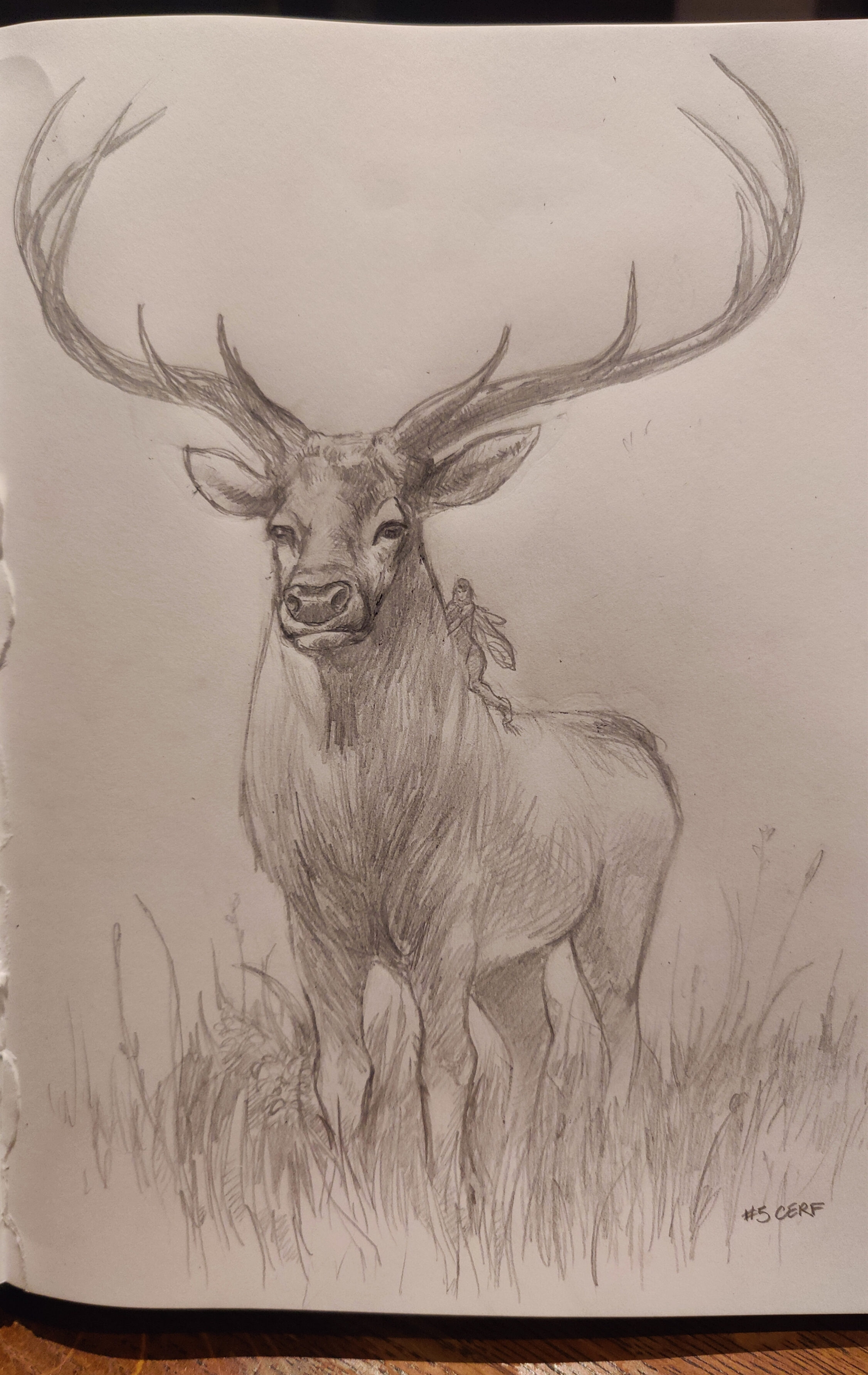 Je ne connais pas du tout, je vais m'y pencher ! Merci pour la reco et pour les gentils mots ! 🥰Ton cerf est superbe, y a une belle lumière ! Peut-être qu'un poil plus d'ombre l'aurait encore mieux fait ressortir. Beau travail très graphique ! Et merci à tout le monde pour tous les commentaires d'ailleurs, sur mes dessins, mais aussi sur ceux des autres ! C'est stimulant et encourageant d'avoir un petit mot sympa.
