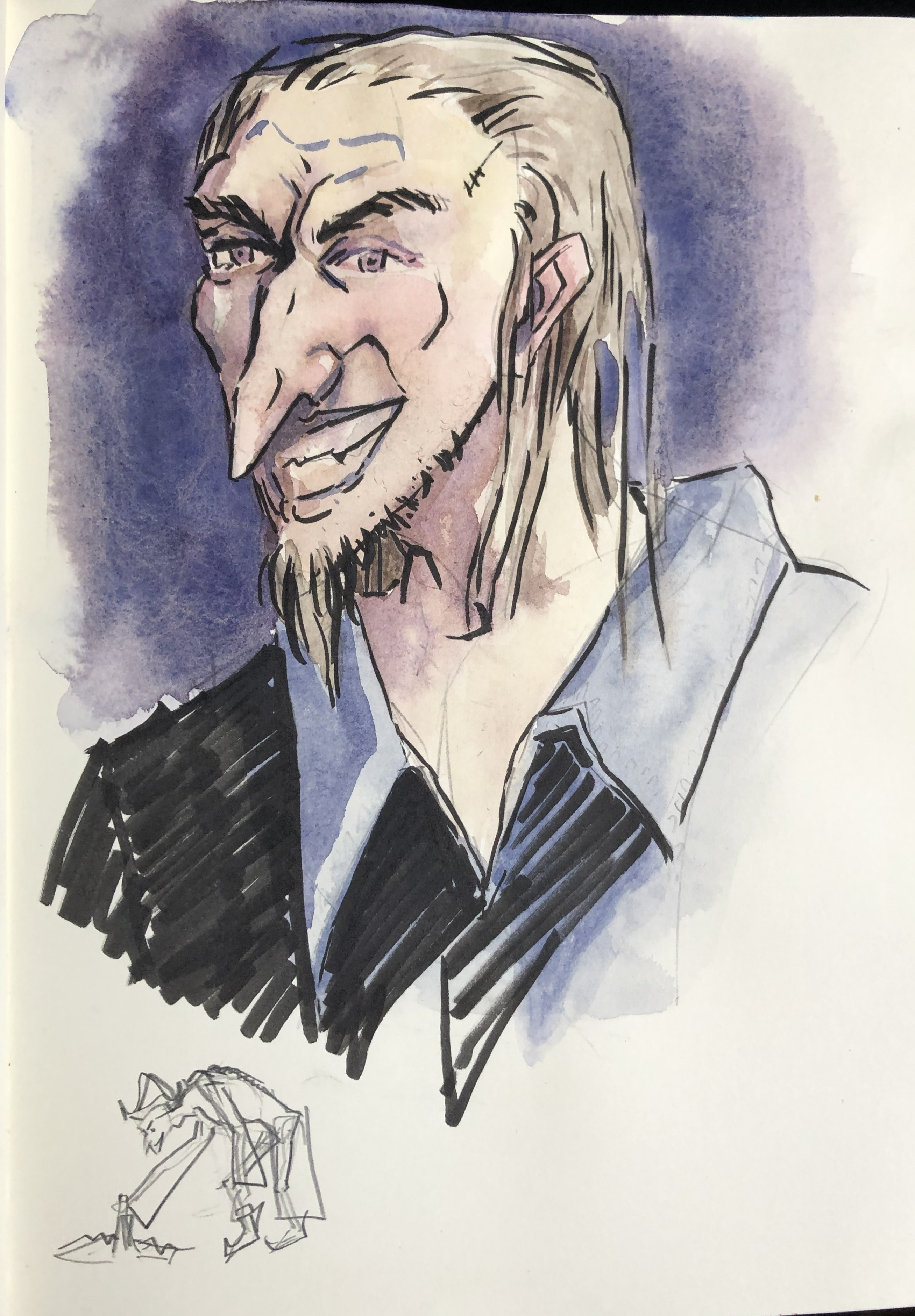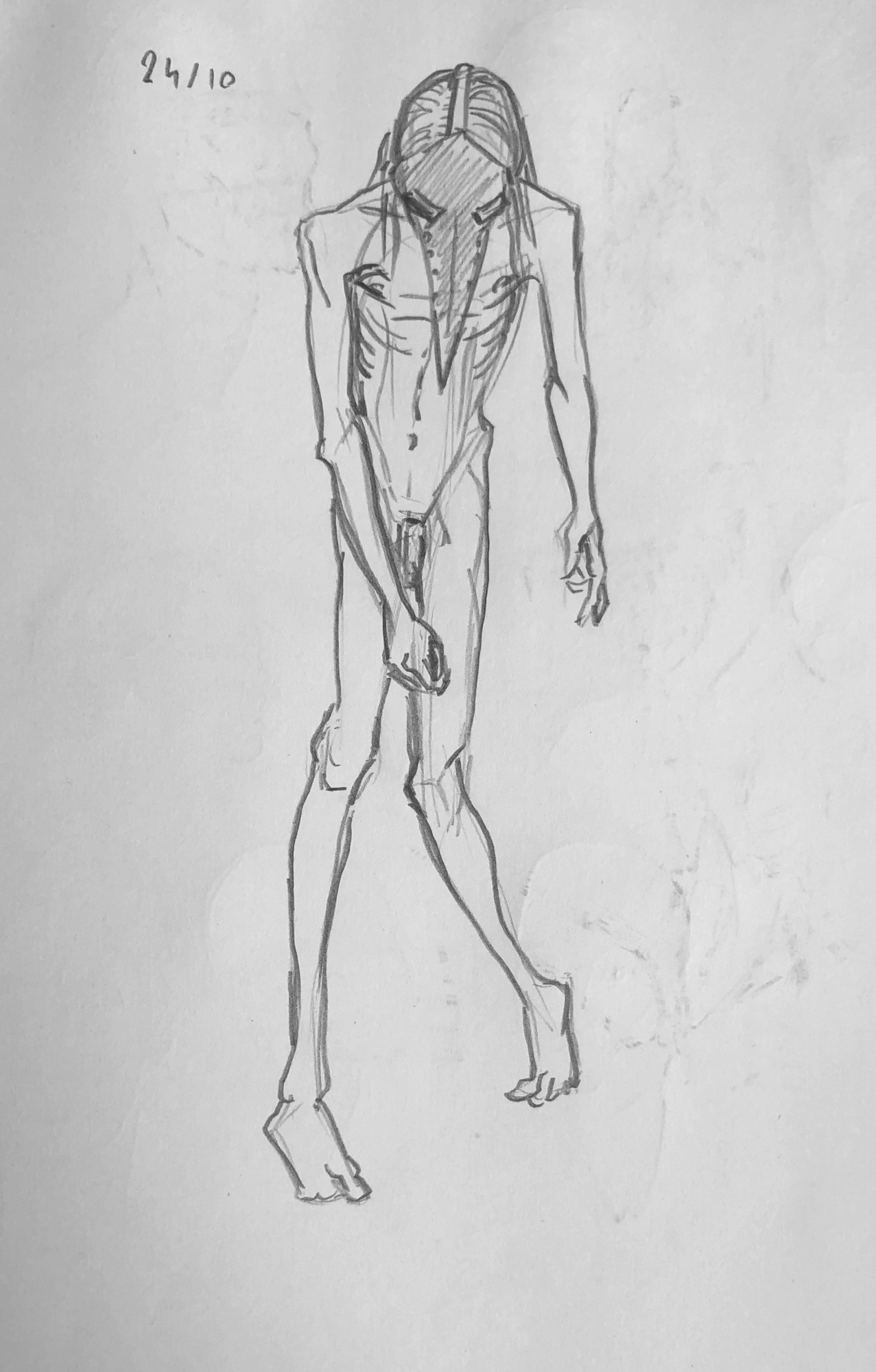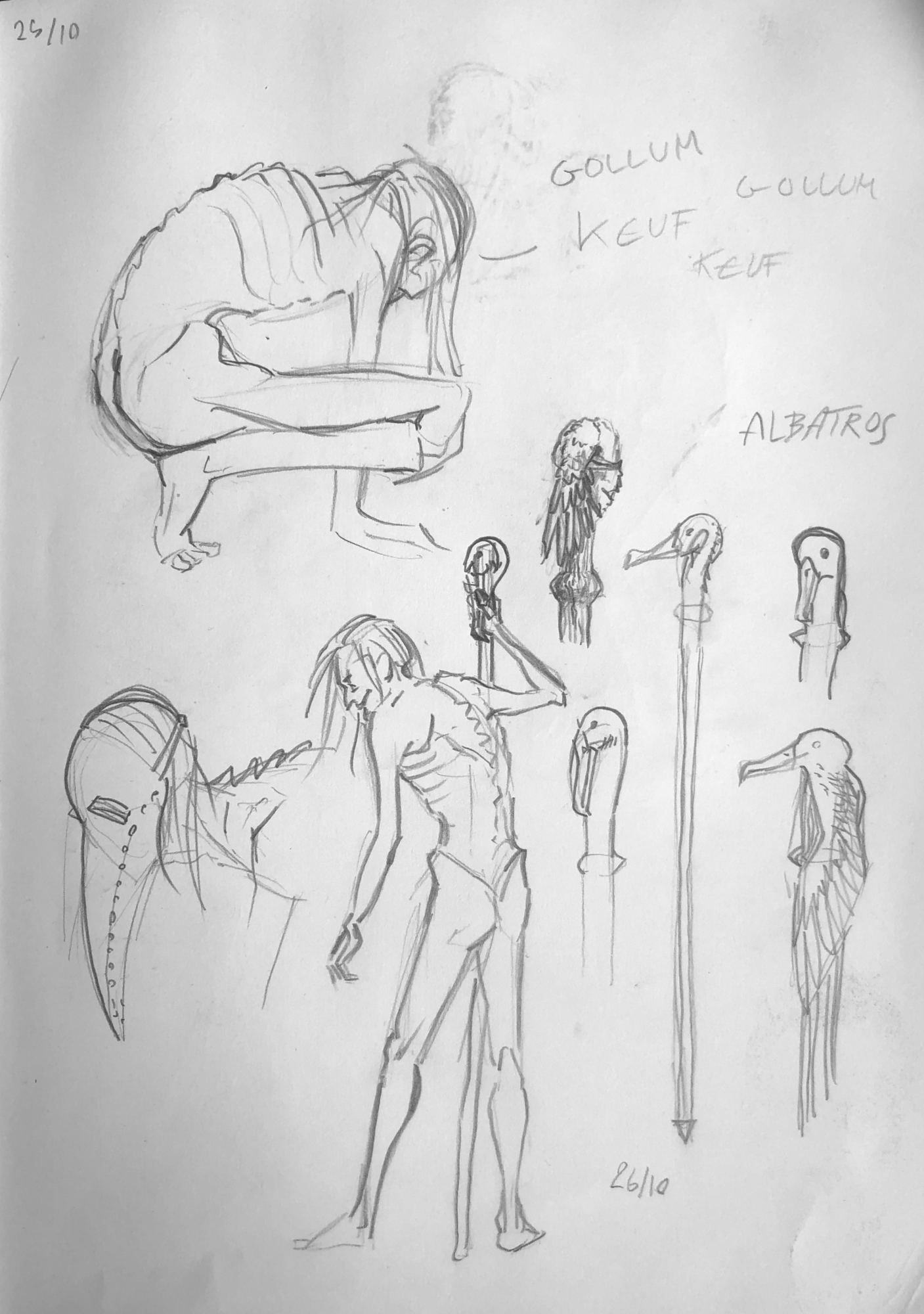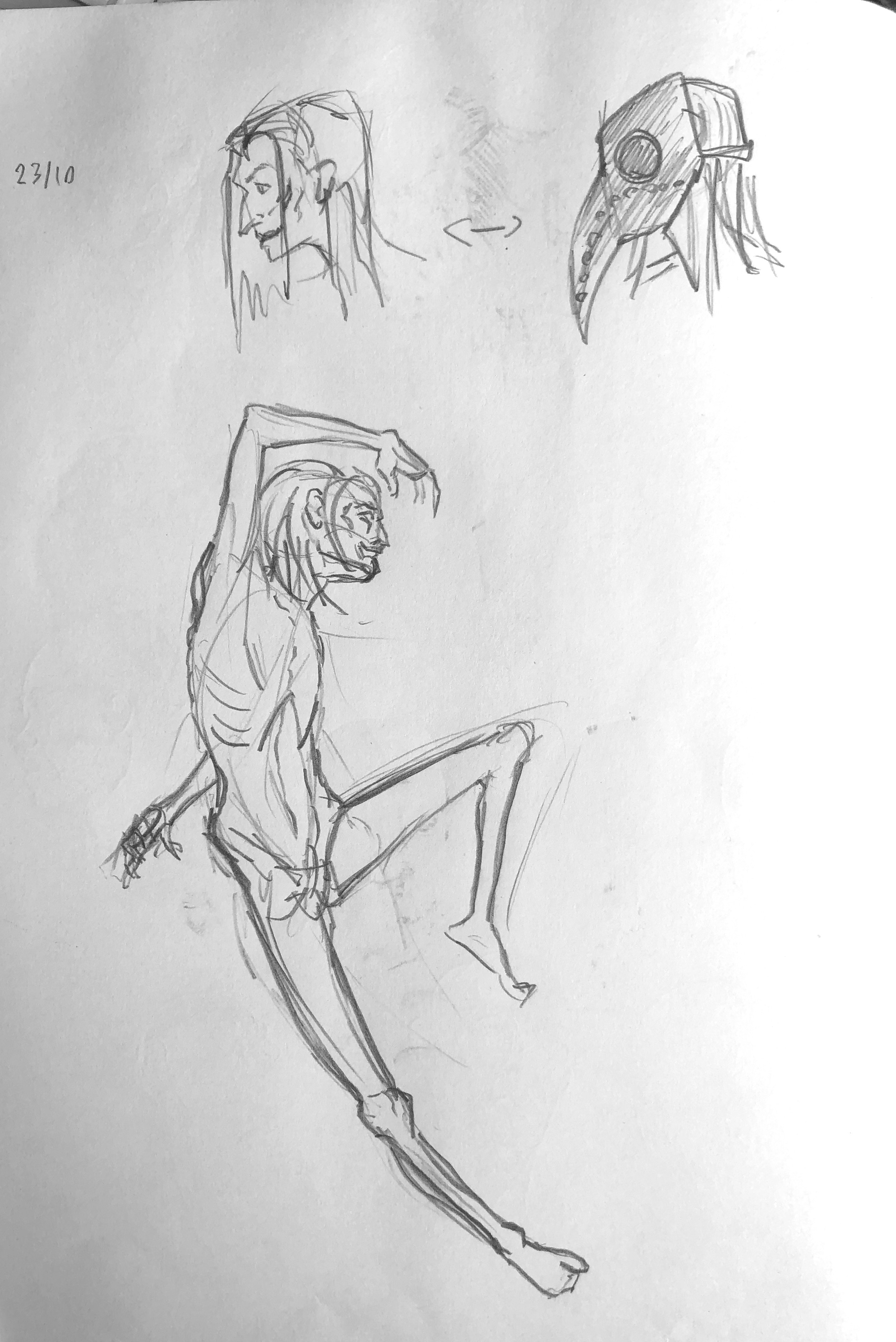 Hello à tous ! Je commence le challenge avec des tendinites aux 2 poignets, donc ça va être compliqué, mais c'est pas une raison pour ne pas essayer ! Pour l'instant, j'ai fais mes croquis en tradi, pour Long-Nez, le tortureur d'enfant. Voici mes recherches dans l'ordre chronologique. Son apparence s'affine peu à peu dans ma tête. pour les poses de croquis nus, je me suis aidé de MORPHO de Michel Lauricella.