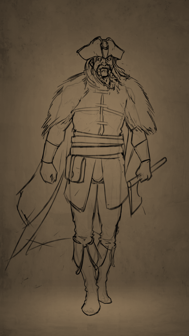 Une première ébauche de design, mon but étant de le "vikingiser" avec des motifs sur les cuirs et des tatouages par la suite