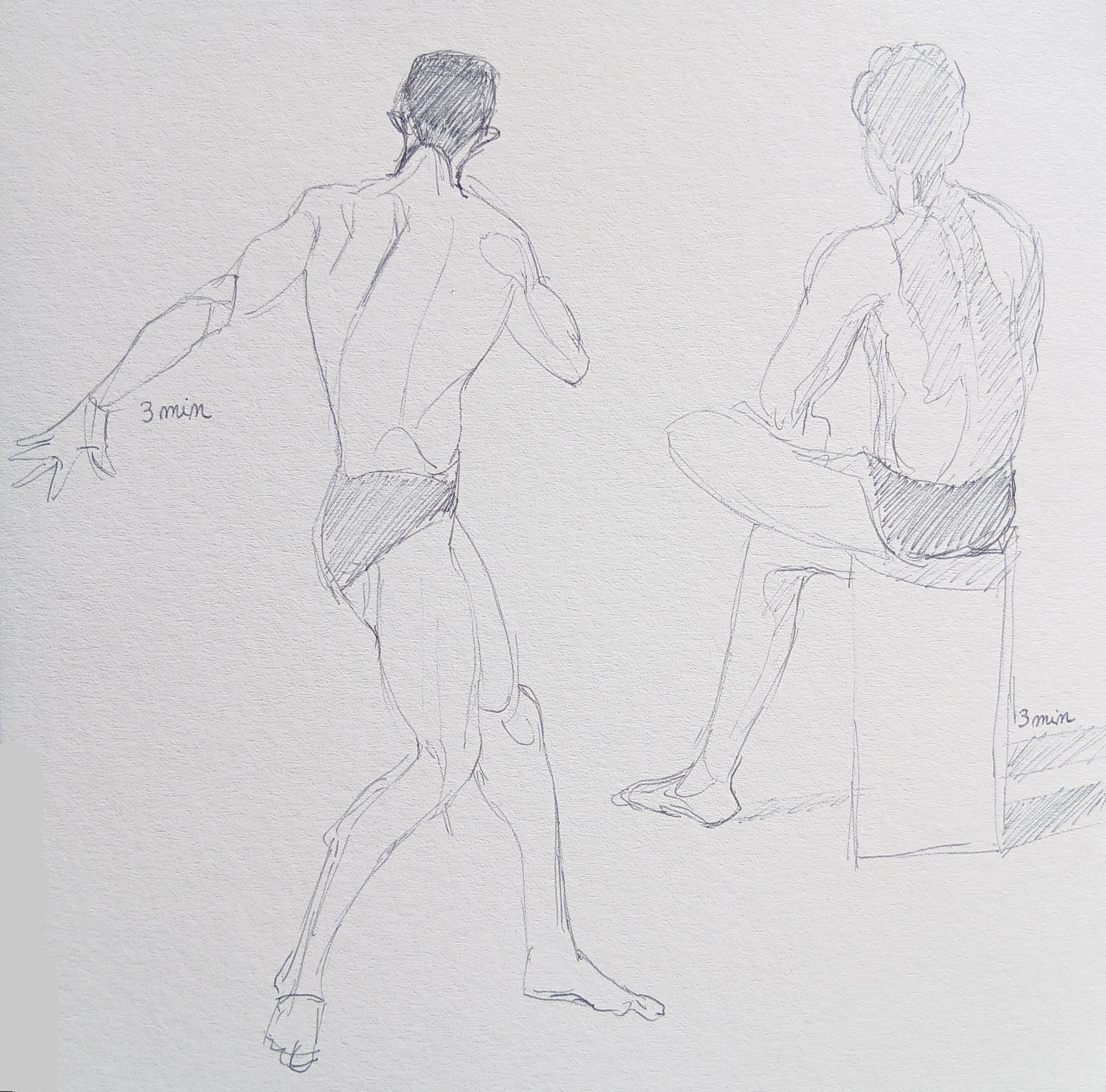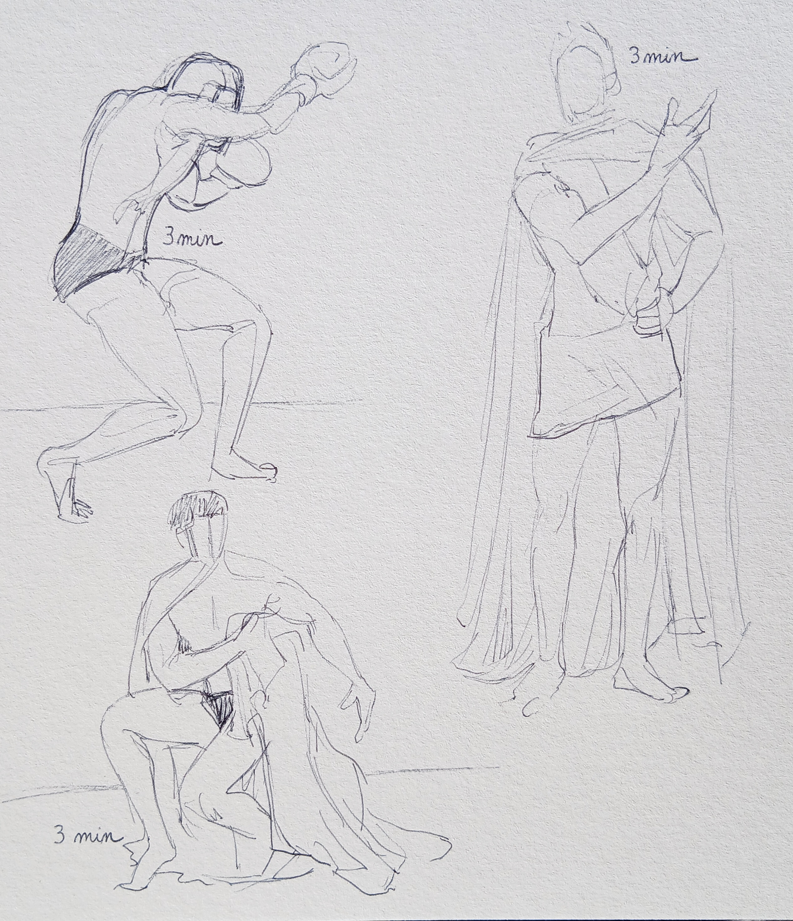 Allez on garde le rythme !! Jour 4 : Des messieurs en slip, 5 poses × 3min, toujours au stylo bille ^^ (Refs : Line of action) -