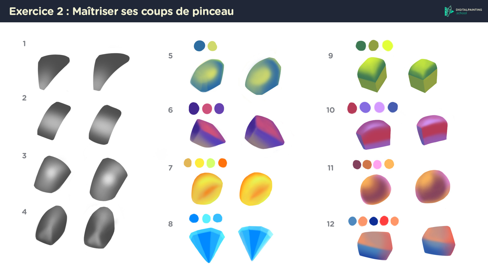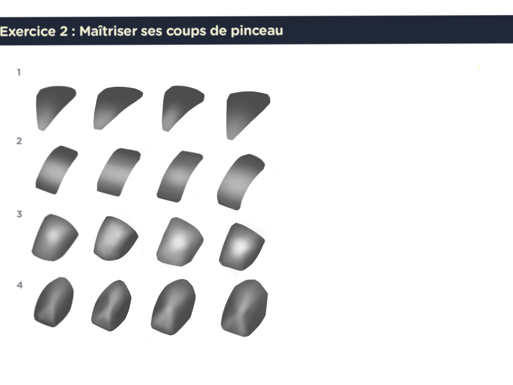 Bonjour, Je vais diviser l’exercice en plusieurs parties pour essayer d’en maîtriser au mieux chaque élément Voici donc les premiers éléments en noir et blanc ; je note déjà une difficulté dans la représentation des formes et l’utilisation des ombrages. Parfois des coups de brush ou gomme sont visibles. J’ai laissé les formes dans l’ordre chronologique dans lequel je les ai fait pour essayer de voir une potentielle amélioration Merci beaucoup d’avance pour vos retours 😄 Bon week-end