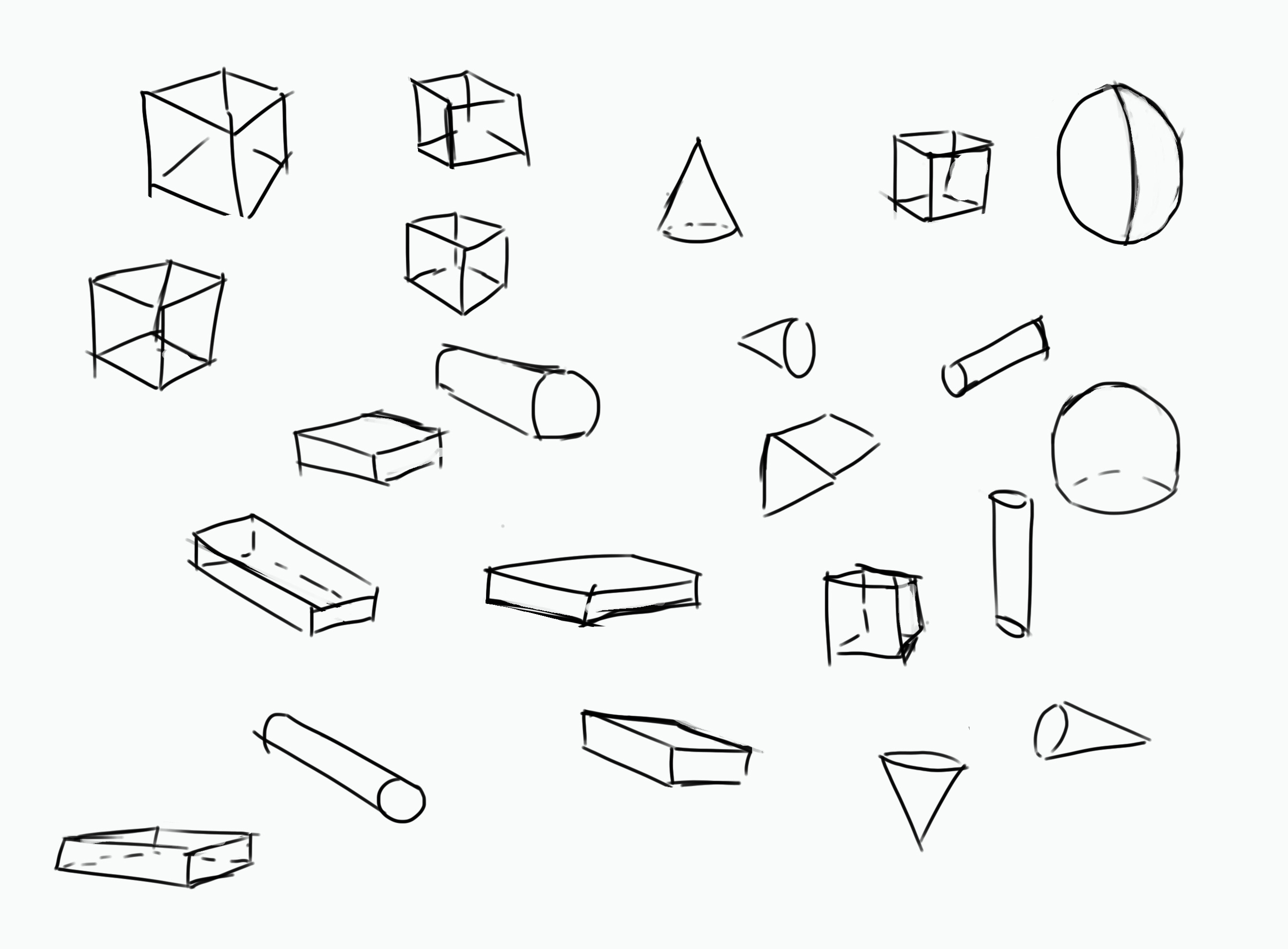 2. Salut à tous, Ce défi tombe à pic pour reprendre du temps pour le dessin étant donné que j'ai pris moins de temps ces derniers mois pour travailler cela spécifiquement car j'étais plus focalisé à mettre du temps sur d'autres axes que je veux développer davantage (game design, game dev) ou en plus (Blender, animation). Ce sera l'occasion de récréer une habitude utile sur le long terme qui sera ma motivation intrinsèque et en motivation extrinsèque la tablette graphique si j'ai de la chance^^'. Du coup pour ce premier jour, voici mes 20 minutes à faire des formes 3D (ou parfois des choses que j'ai envie de dessiner). J'ai en tout cas hâte que parmi mes futures sessions, il y en ait où j'étendrai grandement la durée au-delà 15 minutes de base 👌
