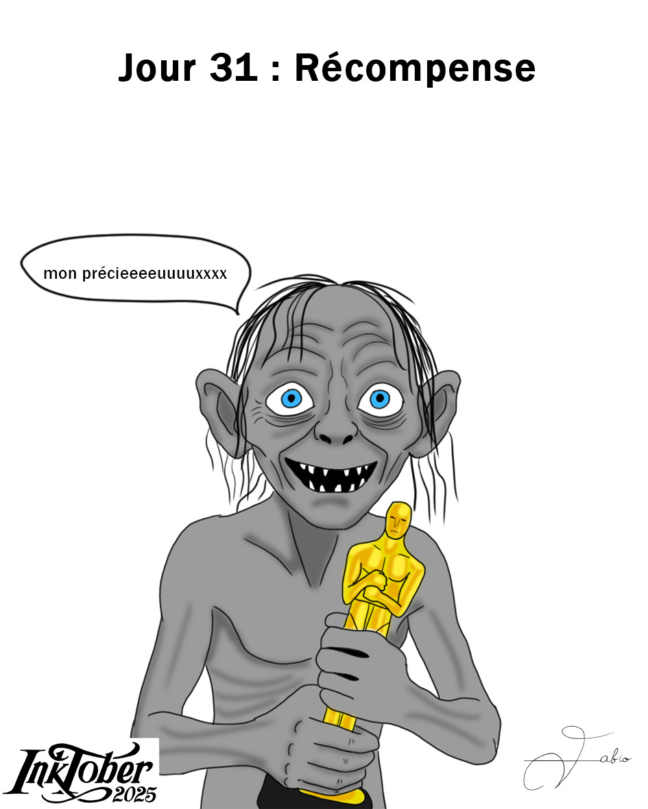 JOUR 31 (DERNIER JOUR !) : Récompense / AwardEtiennaze a répondu à un sujet de Chaz dans Inktober 2025 Salut à tous, ça y est c'est le dernier jour ! Pas énorme de temps aujourd'hui mais fallait bien terminer quand même. On dit que bien mal acquis ne profite jamais mais ce petit gobelin n'a jamais compris pourquoi. @Walvyn Bravo à toi aussi ! @evelynet Trop cool ton idée de rassembler tout tes dessins du inktober @Diamones Vraiment très cool et bravo la nuit fut productive hahaha @ApostroKeWaoh quelle scène ça envoie du lourd j'adore ! @stefou Tellement cool cette citrouille @Gopperus J'adore la symbolique et l'effet de grandeur ! @daff C'est vrai qu'ils méritent une Award aussi mine de rien @marina_s Trop chou ces deux là, bravo @yubelsTres cool, c'est marrant j'avais aussi penser à un chien et son os comme première idée @fabio Excellent le Gollum hahah @fred21 Joli rendu bravo Bravo encore à tous, pas facile comme challenge ! C'était un plaisir de retrouver toutes vos productions chaque jour c'était super motivant. Et un grand merci pour vos messages et retours, ça m'a fait chaud au cœur.