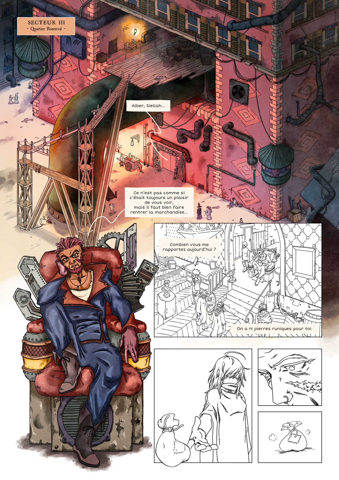 Au-Delà des Murs - Projet de BD (WIP)seb-pj a répondu à un sujet de seb-pj dans Vos créations finales Ici on peut voir une planche dont la colorisation n'est pas achevée. C'est sans doute ce qu'il y a de plus long à faire, car j'utilise un style aquarelle qui me complique la vie, mais je suis satisfait du résultat.