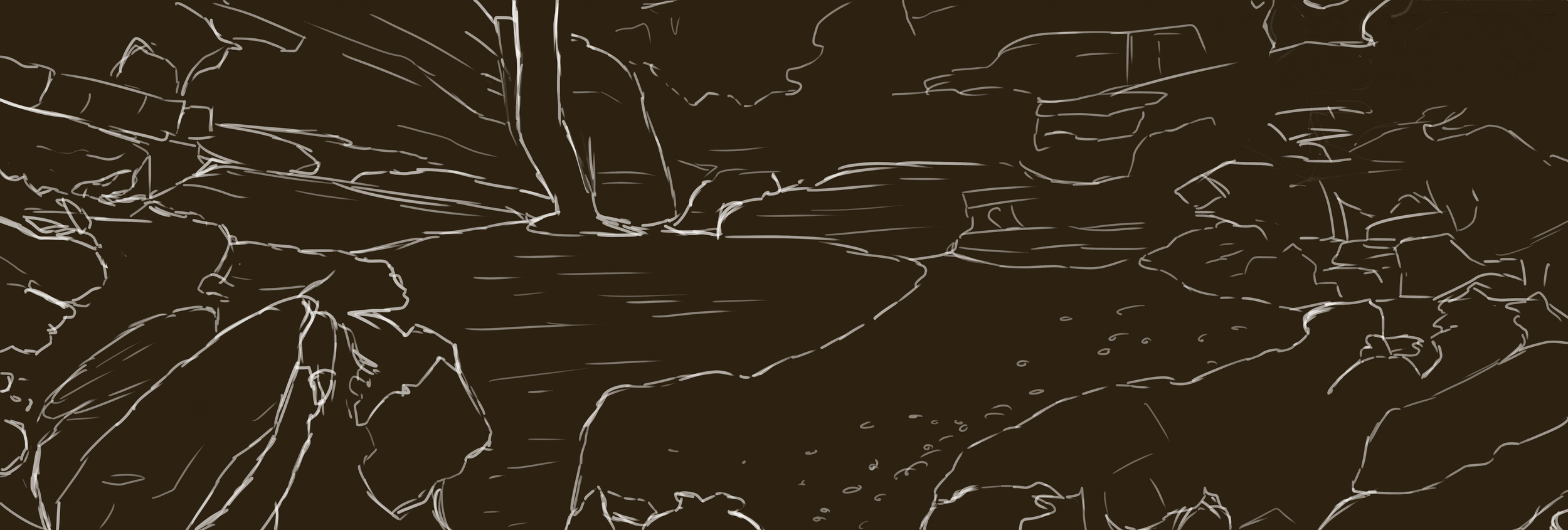 16. Salut @kyuare et merci pour ta réponse. Je t'avoue que tes conseils m'ont rendu perplexe, surtout qu'ils viennent me saisir au moment où je suis en pleine interrogation. Je vais répondre en plusieurs parties, j'espère ne pas faire trop long. Désolé, j'intellectualise beaucoup. Donc, pour commencer, tu me dis "ton principal soucis vient du fait que tu travailles trop en contours, tu oublies de penser en volumes.". Je ne remets pas en question le conseil, qui me semble bon, mais par contre je n'arrive pas forcément à le comprendre dans le contexte de l'exercice. Car j'en suis au Chapitre 2 : le croquis, et ce qui me semble demandé c'est de reproduire la méthode donnée, à savoir commencer par une ligne épaisse pour faire les volumes puis, étape par étape, réduire la taille du trait en ajoutant les détails. Ce que j'ai fait pour tous les dessins au-dessus, du crâne jusqu'aux visages. Du coup, la technique dont tu me parles me semble bien mais je n'ai pas l'impression qu'elle corresponde à celle demandée par l'exercice. Je peux me tromper ceci dit et ça me trouble. Suis-je hors sujet ? J'espère ne pas être parti complètement à côté de ce qui était demandé. Note que, pour moi, la méthode demandée dans l'exercice me semble super pour faire des objets mais qu'elle me semble plus compliquée pour faire des visages justement, surtout quand tu veux reproduire l'expression de ceux-ci. Celle que tu proposes semble plus indiquée dans ce but. Et c'est peut-être celle que la formation propose dans les chapitres consacrés aux visages ? Enfin bref, je suis un peu perdu du coup. Ais-je mal fait l'exercice ? Ou est-ce que ton conseil m'indique juste une meilleure méthode pour les visages ? Ou est-ce qu'il faut que j'emploie les différentes techniques sur le même dessin suivant ce que je représente ? Ensuite tu me dis : "Mais si tu veux t'ouvrir au réalisme tu dois changer ton outil, utilise une brush avec du lineweight et plus granuleuse, voit le dessin comme du sculpt plutôt que du tracé. " Eh bien justement... Je suis en pleine interrogation sur le style que j'aimerais adopter. Car, pour l'instant, je ne sais pas. Mon objectif final, c'est de faire une BD. Mais, dans quel style ? Ça reste flou. Surtout que j'aimerais aussi pouvoir faire du manga à côté et aussi des petits strip comiques. A côté de ça mes influences vont de bandes dessinées comme les Meta Baron, Enki Bilal, les comics Marvel, les mangas... Bref, des styles complètement différents. Et je ne sais pas comment forger mon propre style au final. Donc, pour en revenir à ta remarque, je ne sais pas si je veux "m'ouvrir au réalisme." Je ne suis pas sûr d'être fan d'un style trop réaliste justement, en tout cas pas hyper-réaliste... Je crois que ce que j'aimerais le plus pouvoir retransmettre ce sont les émotions sur les visages. Peut-être parce que dans la vie de tous les jours je peux avoir du mal à reconnaitre les gens et à bien identifier les émotions sur les visages justement et que du coup je me concentre beaucoup dessus ? En tout cas, ça m'a beaucoup énervé de ne pas réussir à capter les émotions complexes sur les modèles que j'ai utilisé pour mes exercices. Ça me parait tellement subtil et j'ai eu beaucoup de mal à trouver ce qui clochait. Ou alors je n'ai juste pas trouvé. Je ne sais pas si j'ai réussi à transmettre mes doutes et si tu pourras y répondre. Je crois que j'en suis à un stade où j'aimerais bien être un peu guidé sur mes interrogations car je suis dans le flou et ça peut être un peu décourageant. En attendant, voici un paysage que j'ai réalisé dans le cadre des exercices de croquis. Je ne sais pas si c'est utile que je continue ces études. J'en ai déjà fait pas mal. Peut-être faire quelques croquis d'objets en plus ? Ou alors je passe à la suite... C'est à dire la fin du chapitre, et donc la fin de la partie gratuite, puis le néant si je n'arrive pas à me financer la formation. 🥲