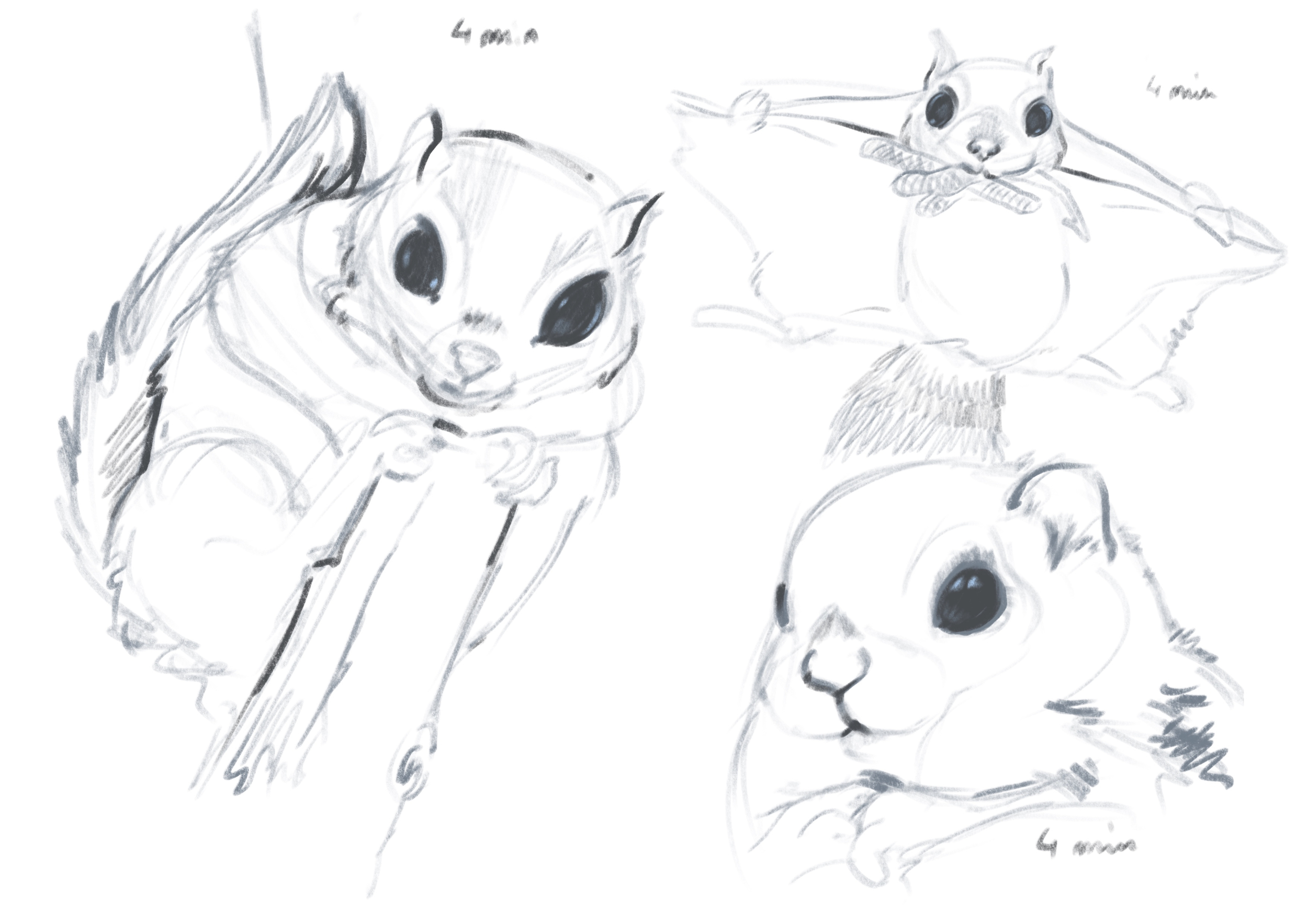 Je viens de voir le mail de Spartan et je suis tentée de participer 🙂 Bravo pour toutes ces sympathiques participations 👏 alors voilà des croquis rapides de Polatouche, petit écureuil volant! -