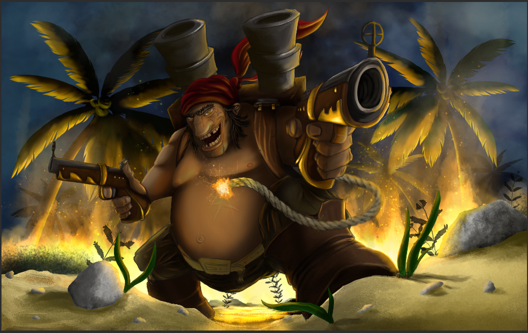 Coucou ! J'ai testé quelques trucs sur ton image, j'espère que ça ne t'embête pas ? Un calque d'ombres plus intenses (sous le bicorne, sous le pectoral, derrière la hache et sous le canon...) puis un calque plus lumineux pour bien séparer le perso de l'arrière plan. Simple sélection au lasso, ça oblige à être synthétique. C'est pas grande chose, mais ça donne plus d'impact. C'est assez grossier aussi, j'ai fait ça vite pour tester ^^' En tout cas c'est très cool, mais si tu ne sais plus trop quoi faire dessus, pourquoi ne pas faire une pause de quelques jours ? Bonne continuation 🙂