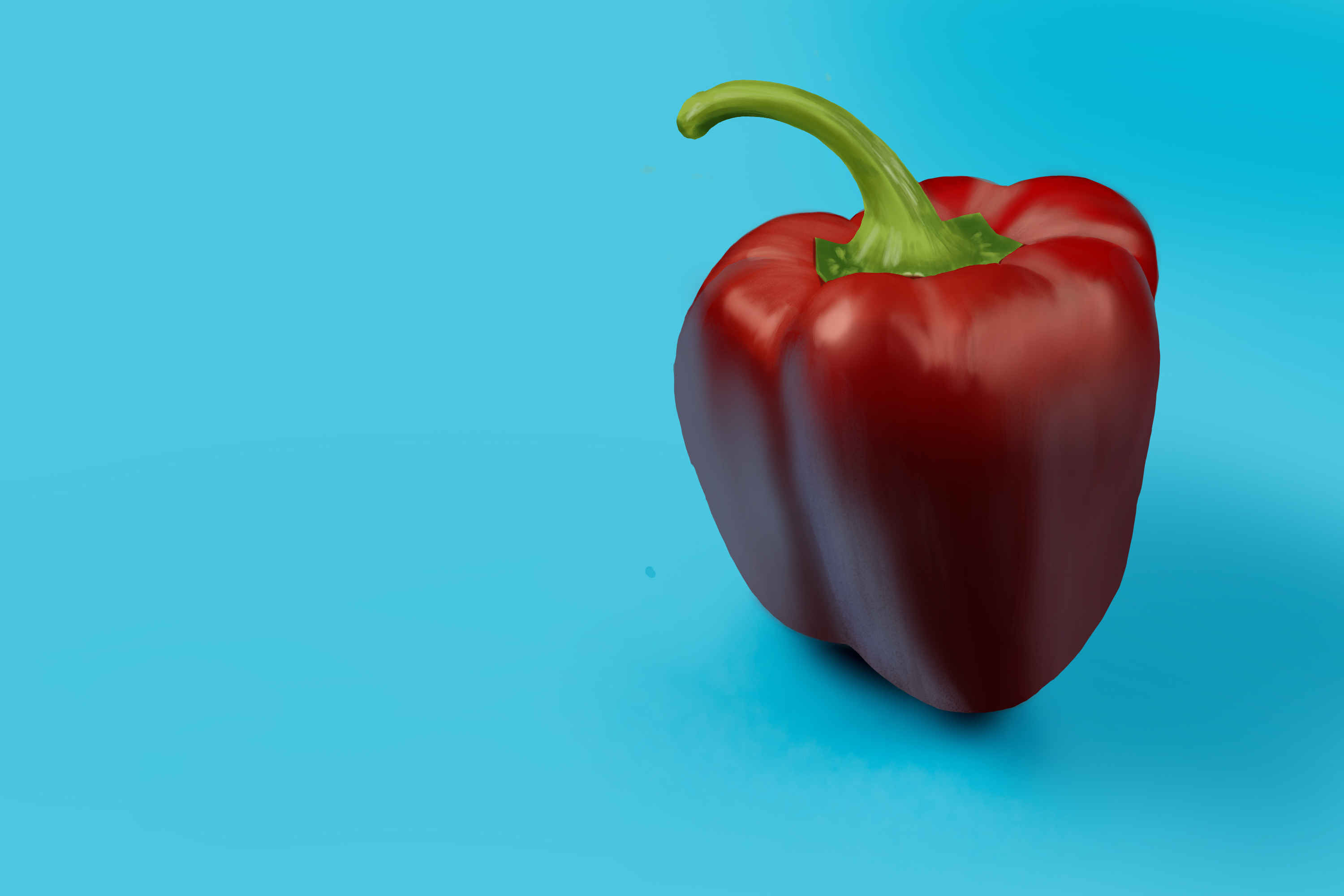 Salut @popkorn😉 Ok très bien, ça marche mieux pour ton monstre 👍 Au niveau de ta rime light, n'hésite pas à l'élargir davantage, en fonction du volume , la lumière peut prendre un peu plus de place : ce n'est pas grand chose ^^ mais ça peut donner un poil plus de réalisme et de volume à ta créature 😉 Alors pour le poivron, je viendrais juste revoir 2 parties : la première c'est l'ombre au centre, je viendrais l'assombrir davantage et l'étendre un peu plus vers le haut du poivron, et ensuite c'est au niveau de la lumière réfléchissante sur la gauche, la couleur est un peu terne, ça manque un peu de saturation ^^ Et pour la branche, c'est mieux mais encore un peu timide sur la zone de transition, la saturation pourrait être là aussi un peu plus forte 😉 Voilà sinon c'est bien, continues comme ça ✌️