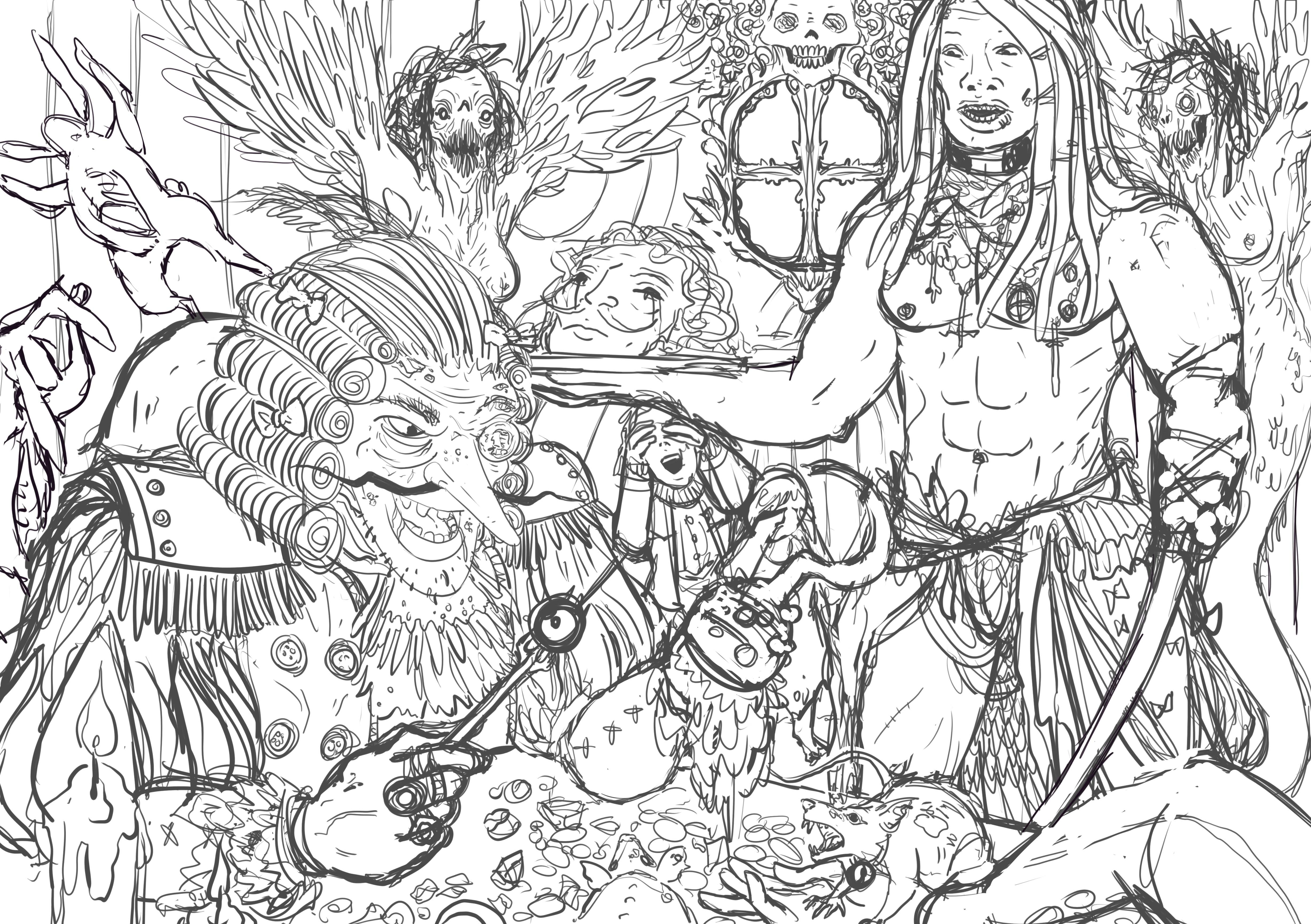 Je pense que je peux aussi jouer avec le corps du serpent et le format de la compo comme suggéré sur le discord, pour apporter un peu de profondeur, et perdre ce côté un peu engoncé, au boulot ^^- 36 réponses