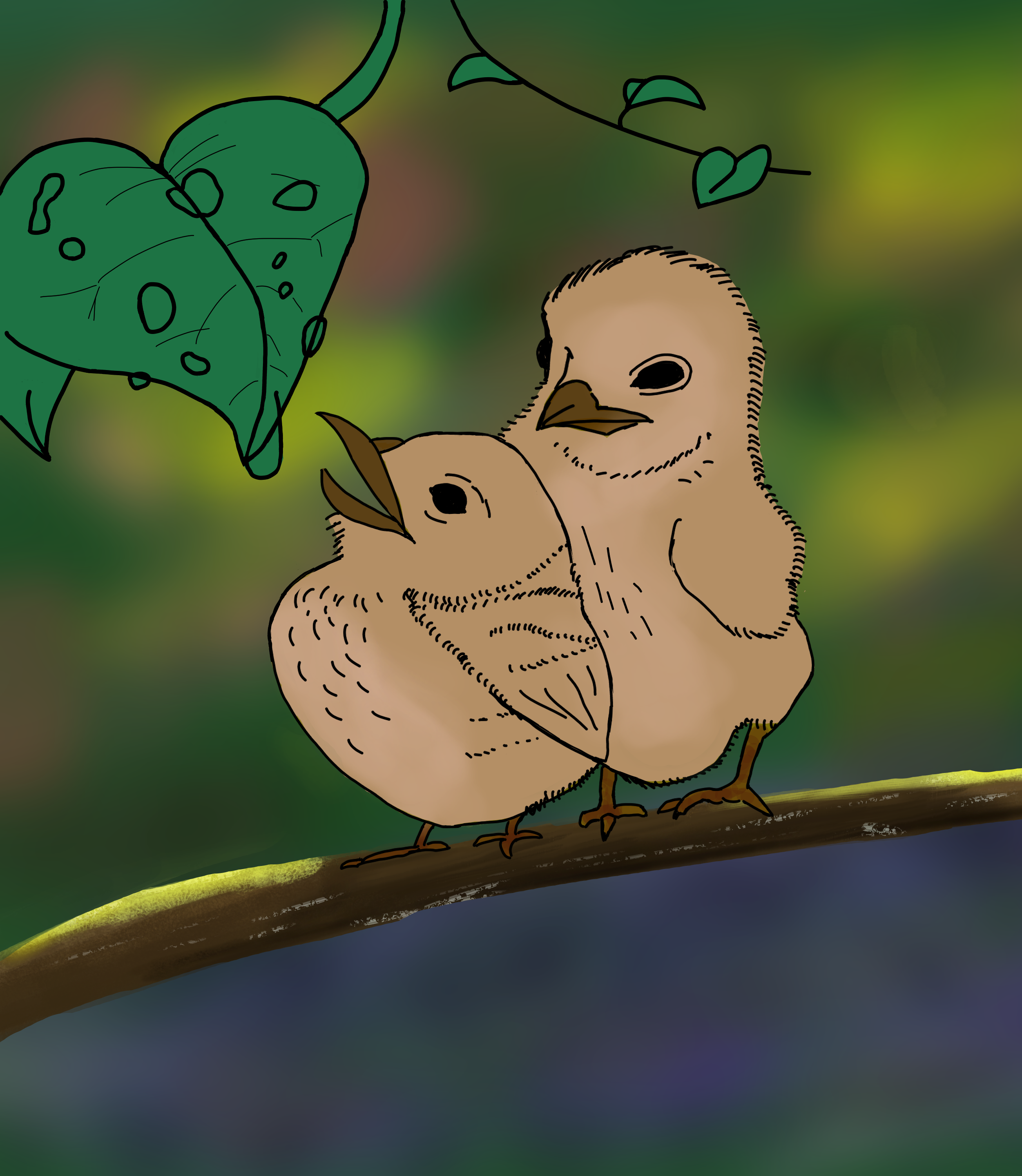 Coucou @Raphalelle les sujets de ton dessin ne sont pas bien disposés parce qu'il y a une grosse zone inexploitée à gauche: Tes montagnes servent à habiller la scène, ce qui est mis en valeur ce sont le soleil et la fille car ce sont les sujets du dessin. A la place, place tes sujets sur les tiers de l'image comme ceci: Tu auras un meilleur équilibre entre la gauche et la droite. Bon courage !