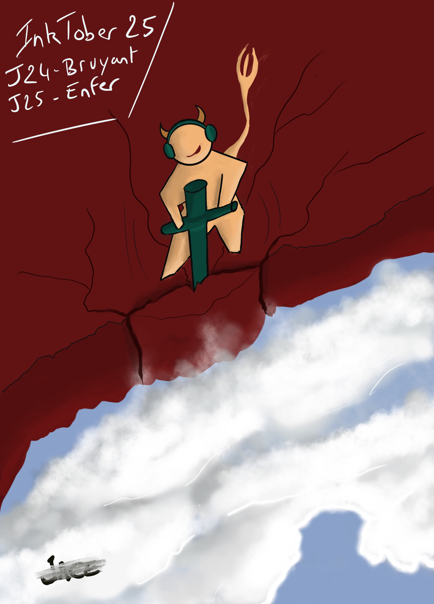@daff, comme d hab tout simplement magnifique! De mon côté, je n ai pas eu le temps de dessiner hier pour l InkTober donc je fais 2 en 1 aujourd’hui, bruyant et enfer. Et pour ceux qui ne connaissent pas, j ai repris le style de Jace, j ai imaginé un gouzou entrain de casser l enfer à coup de marteau piqueur.
