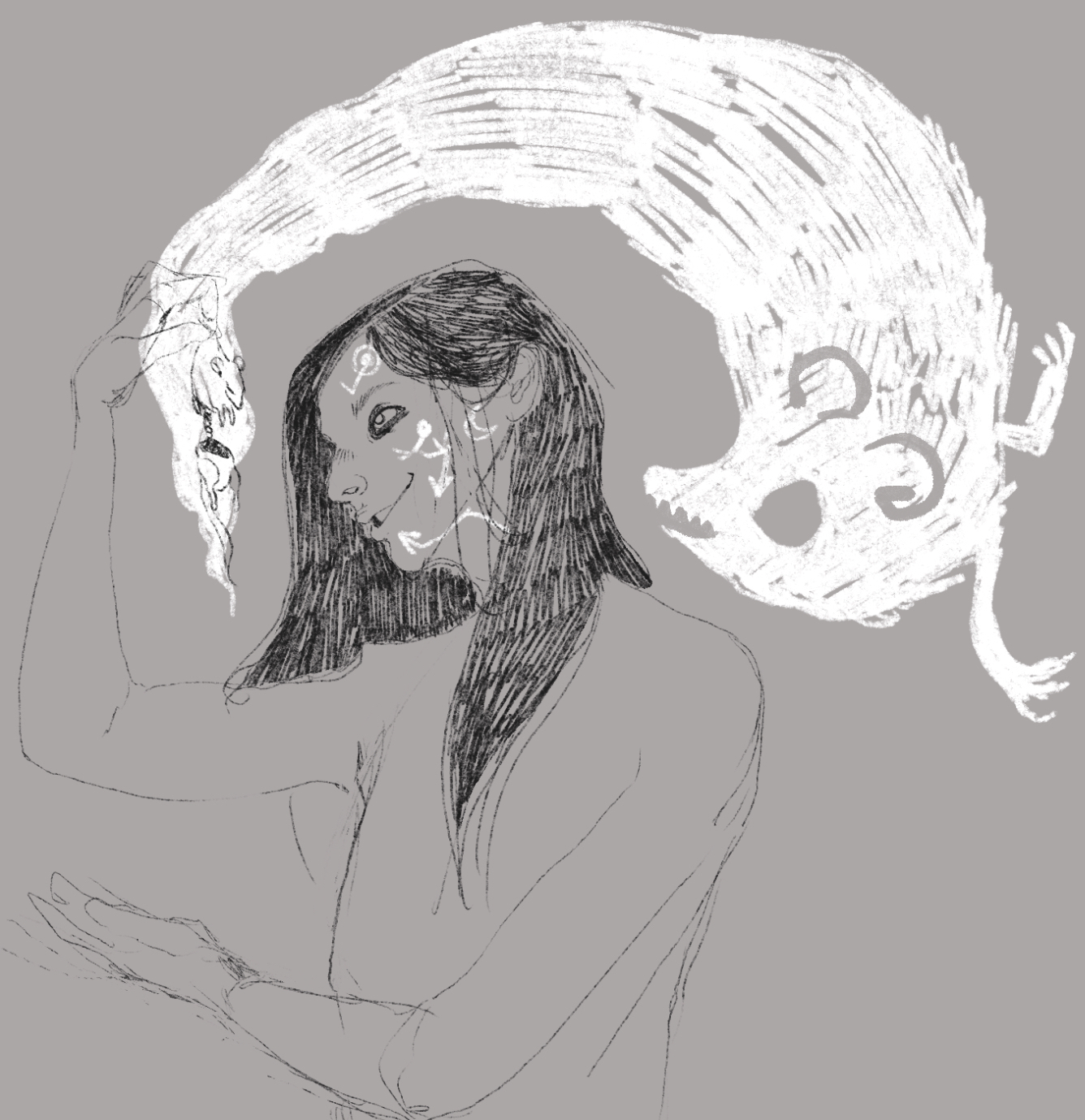 Salut! ça fait super longtemps que je n'ai pas mis les pieds ici. Et ce nouveau challenge m'a motivé à revenir. Voici mes premiers croquis pour le sac de tentacules.
