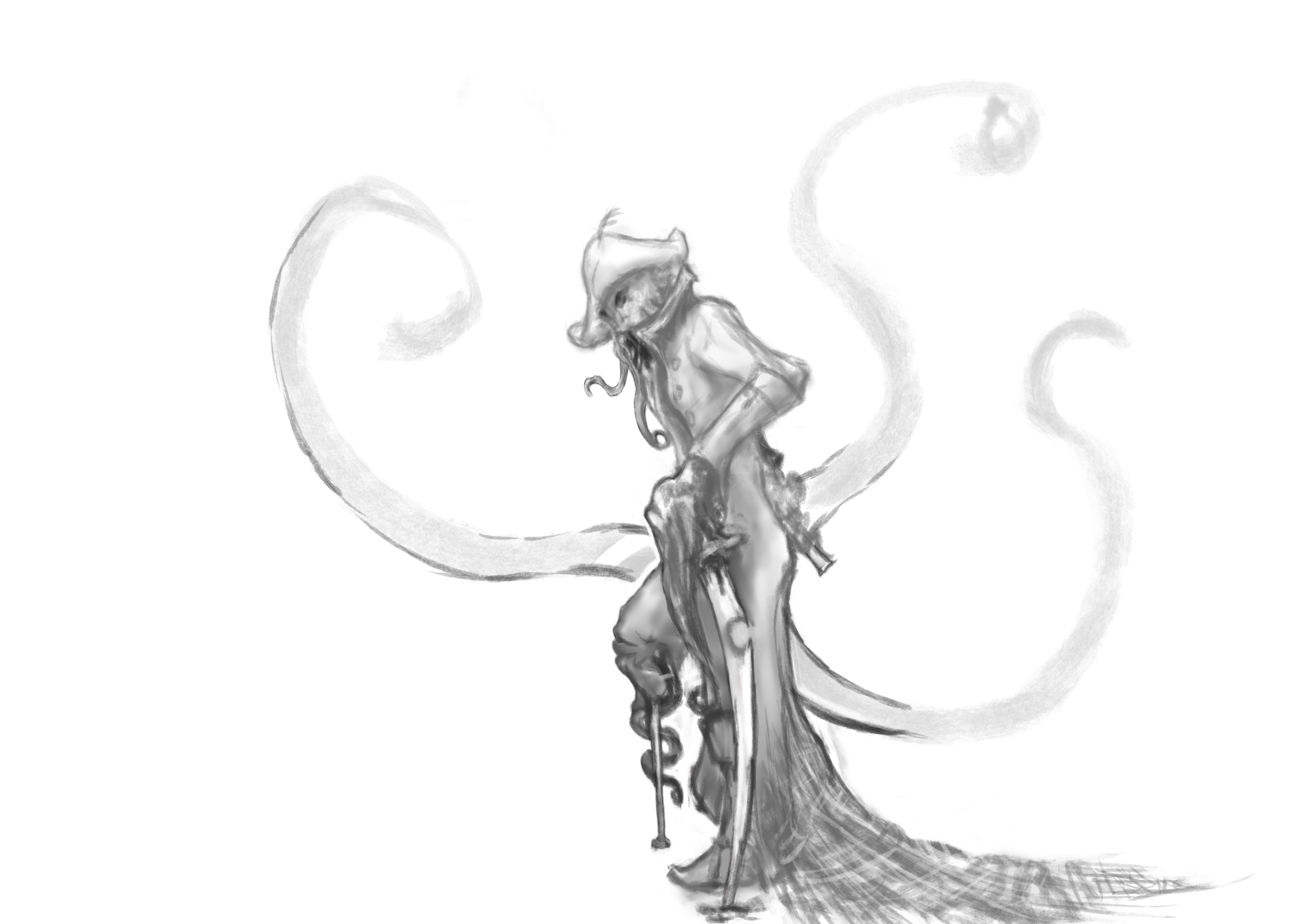 Salut ! Première fois que je poste ici, et que je participe à un challenge. Donc, enchantée, moi, c'est Grizzourse 😄 Le brief de Long-Nez m'a de suite inspiré, un méchant comme on aime les détester. Et en plus, il y a des rats ! 🐀 Je viens donc partager les quelques étapes de réflexions. ---- Character design : ---- Idées de composition et brouillon d'ambiance de la composition choisie :