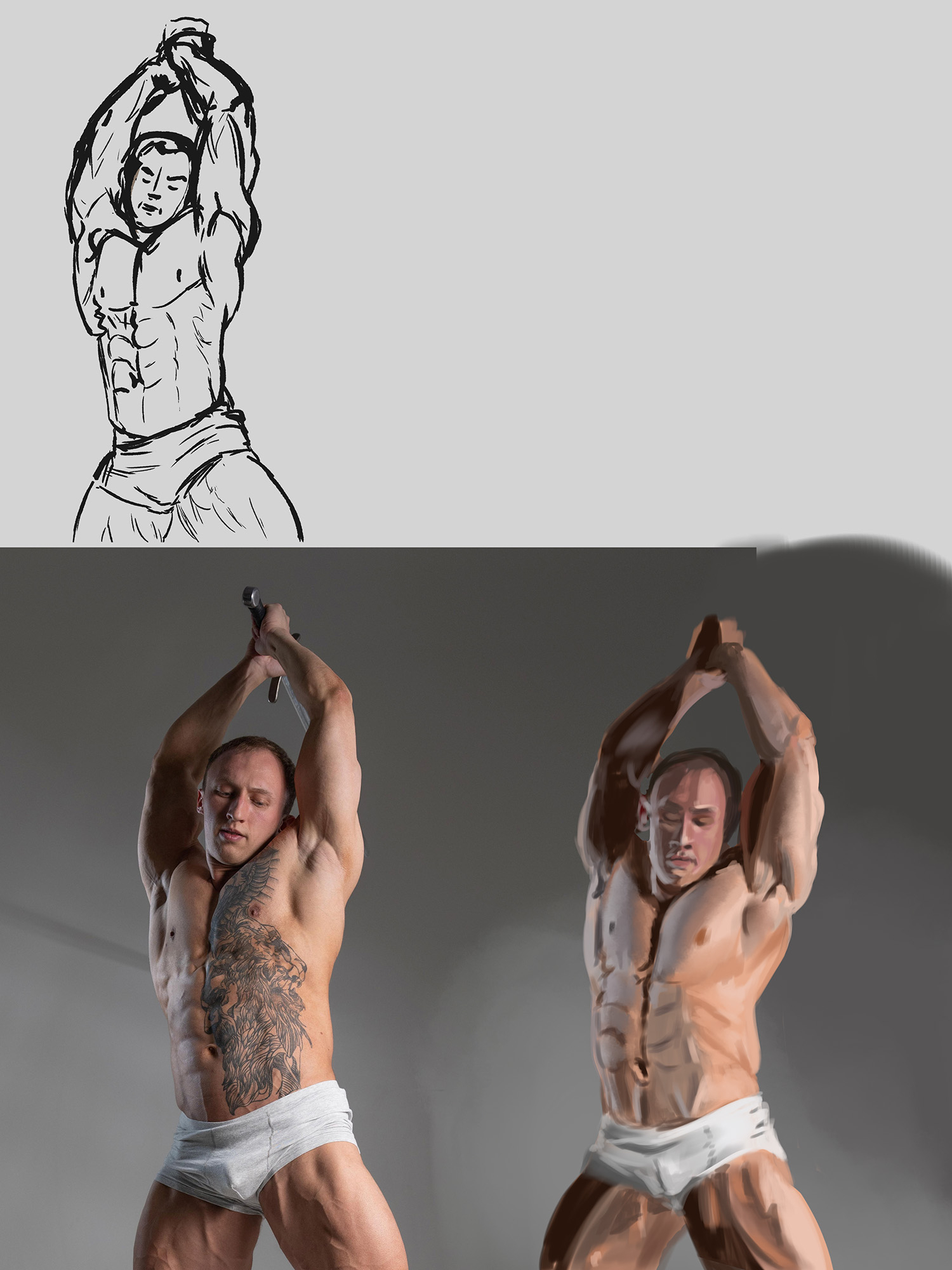 19. coucou voilà mes dessins (celui que j'ai fait en atelier jeudi et que j'ai corrigé suite aux retours de @Erynaur, merci encore). J'ai peut-etre des erreurs sur les muscles du bras, je regarde ça la semaine qui vient.