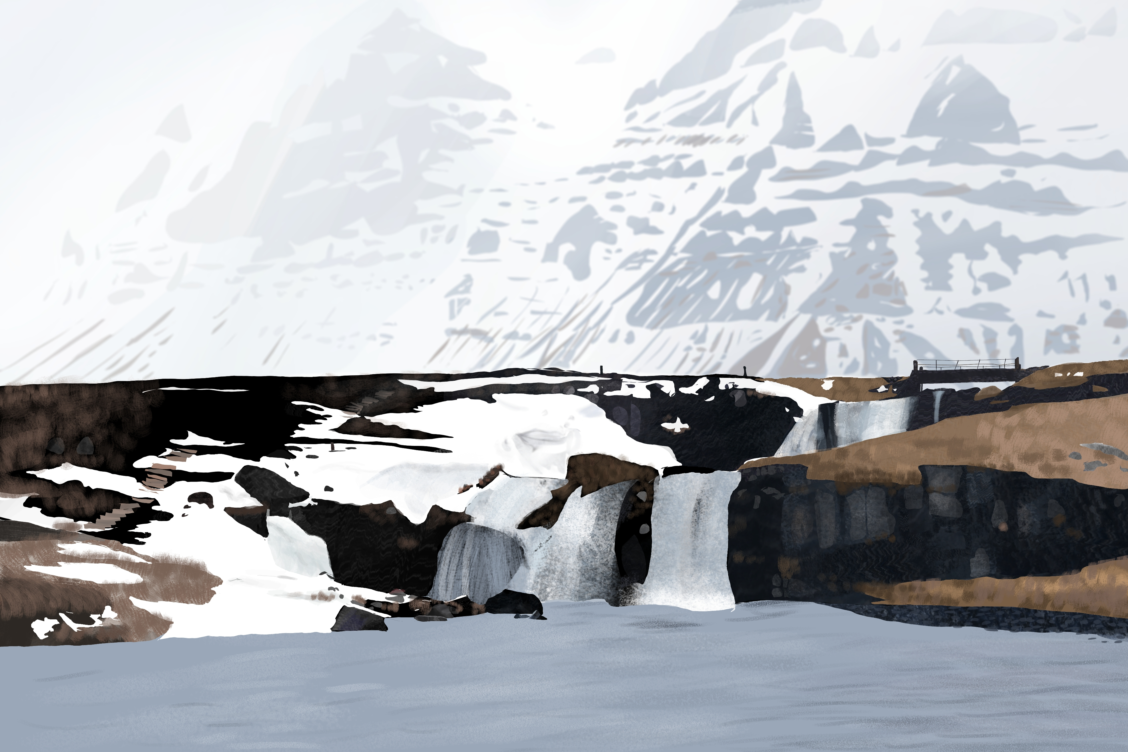 Tu as des très beau coups de brush rien que dans tes tumbnails, j'aime bien la 1 et la 2 car on distingue bien un avant plan et l'arrière plan et puis le fait de penché l'eau donne un peu de dynamisme à l'ensemble, mais je crois que tes compo pourrait être plus dynamique et immersive si tu faisais une compo en imaginant que tu es dans le navire en contre plongée , du coup pas en mode Paysage mais en mode Portrait peut etre? Une idée? Avant plan flou bas de l'image(si portrait) sinon dans un coin (gauche? ) avec une main sur le gouvernail ou sur une corde du navire ,bas de l'image et milieu bas des petits iceberg , peut etre un ou deux avec des armes brisés et rouillé qui ressortent ou une/des pointe(s) de flèche qui flotte(nt) , et pour le 3/4 de l'image le monstre prit dans la glace c'est lui le sujet le plus important alors il doit en imposé sur l'image. Enfin c'est mon avis, tu en fais ce que tu veux 😉 -