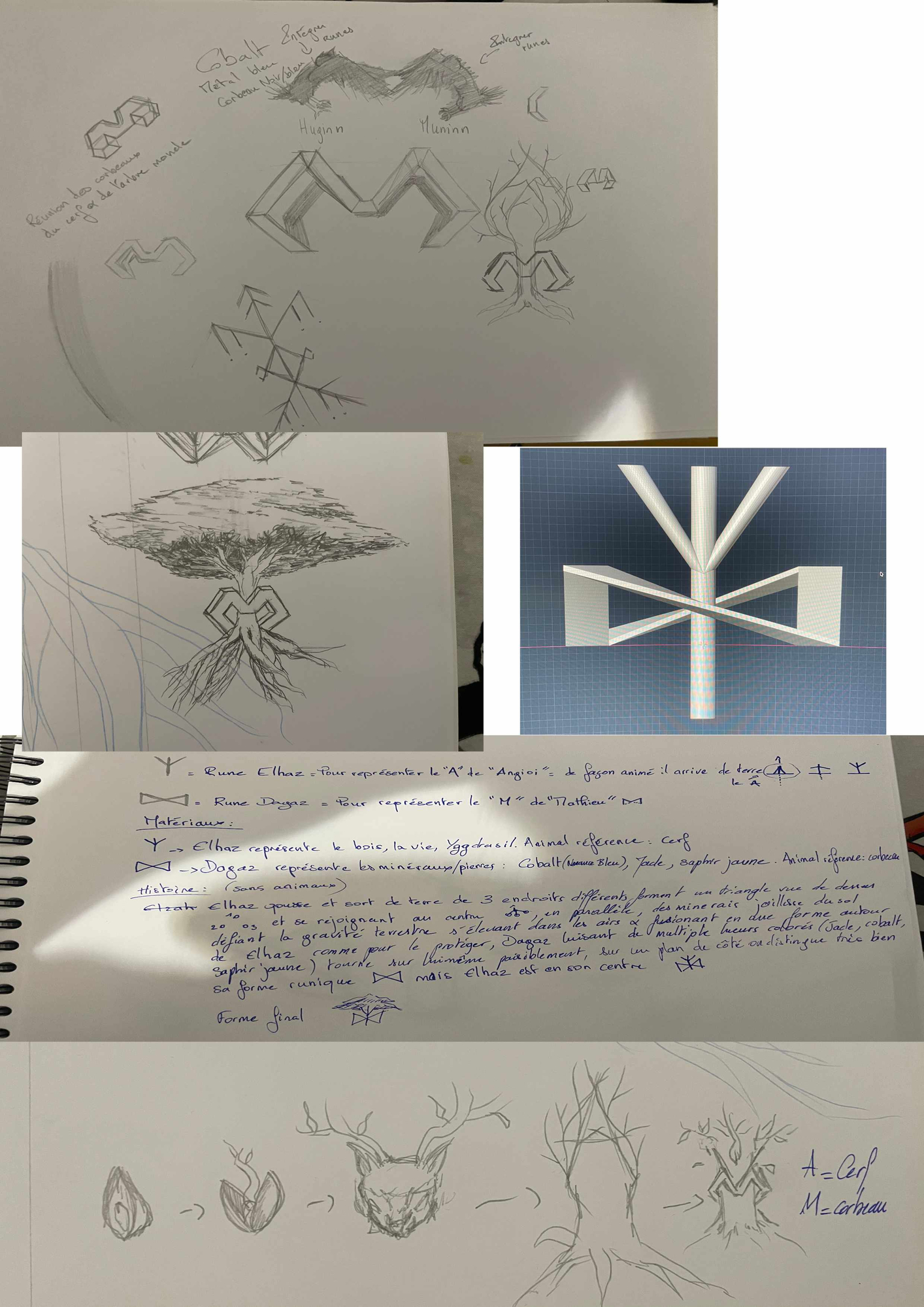 Salutation à tous, Je prévois de reprendre les cours très prochainement mais pour l'instant la priorité est mon logo, j'ai besoin d'avis, je n'arrive pas spécialement à me décider sur le nombre de edge sur le torus que j'utilise pour réaliser la première forme. Explication du logo : Le logo est une combinaison de deux runes Viking, Dagaz & Elhaz. Sélectionné pour leur significations et leur formes. Matière pour Dagaz : Cobalt bleu. Matière pour Elhaz : Saphir jaune. Voici un peu la réflexion sur le logo : Aperçu de la combinaison des deux runes (bien trop chargé en détail j'ai testé plein de tuto dessus) : Voilà, en espérant que vous trouviez une solution pour trancher, je cherche pas a aller dans des détails poussé, le résultat final serait dans le style graphique comics, end painting.