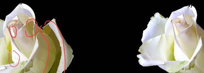 Hello @el_oi_se ! Bravo c'est trèsq clean ! Honnêtement la seule grosse erreur ça serait l'espace de l'ombre portée sur le pétale tout à droite qui devrait être plus large. Le reste c'est plus ou moins du chipotage. On pourrait aussi épaissir la feuille en bas à gauche et marquer plus la light sur la petite feuille sous la rose Et le reste c'est des ptits contrastes à booster, des espaces à combler ou colorer mais rien d'alarmant. Bon courage ! Continue comme ça c'est propre !
