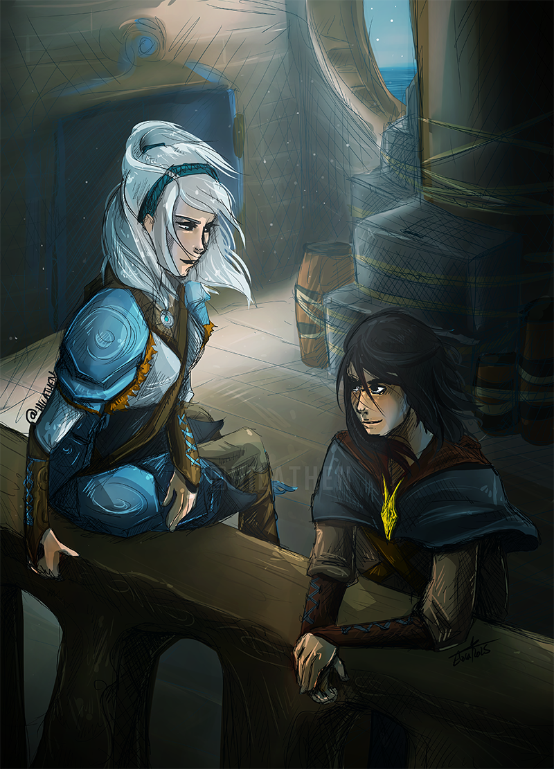 C’est bien ça avance ! bonne idée pour les bateaux mais attention qu’ils ne soient pas trop visible non plus, la star de ton illu doit rester le kraken 😜