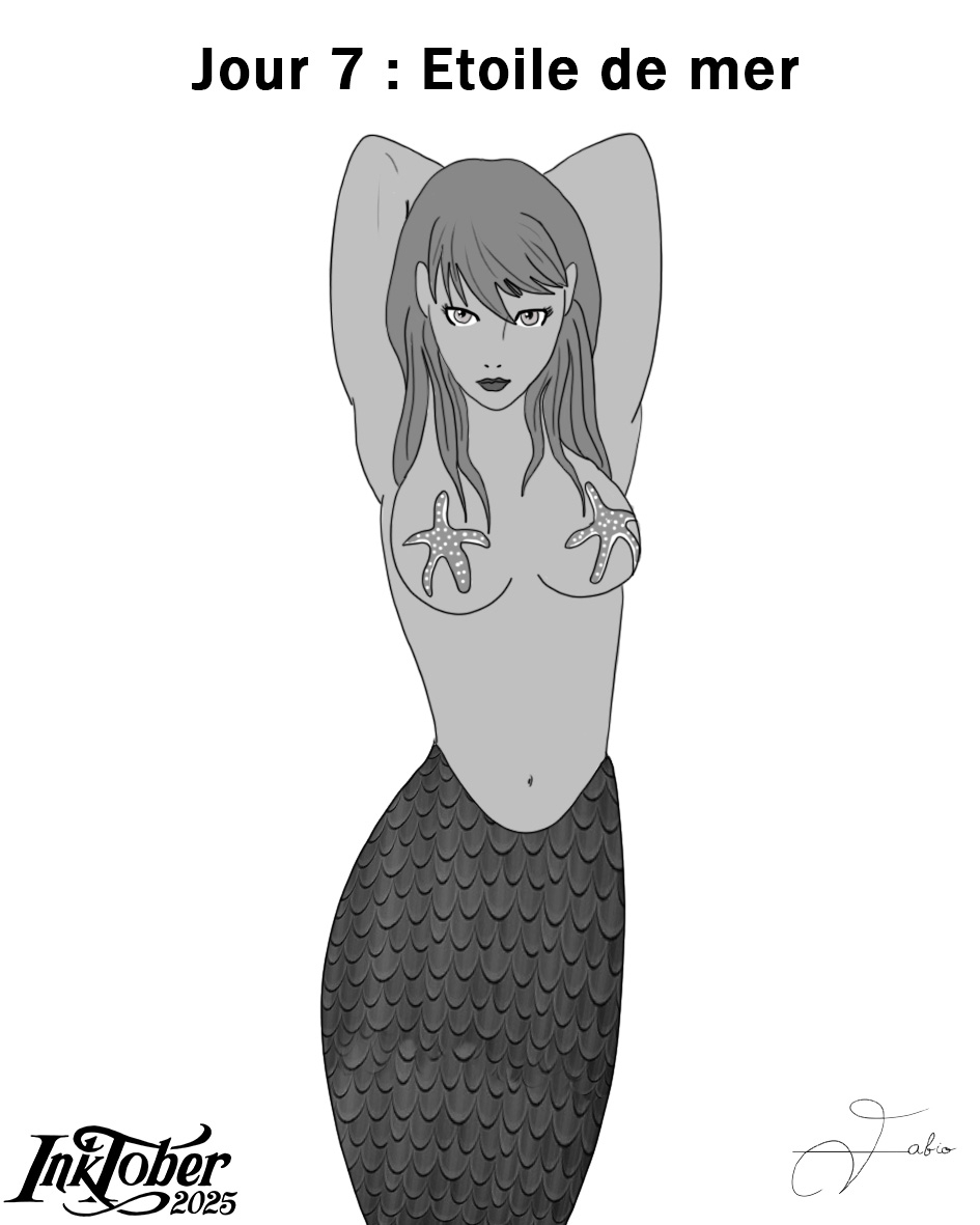 Hello! @Junemerci pour ce doux rappel des vacances 🙂 @ShelterBelle couleur, les reflets sur le personnage rendent bien aussi! @ApostroKeSâche que grâce à toi, je commence à développer une phobie des étoile de mer! (les mimics de Darks souls..🥰) @Julie LTrès belle sirène! Après juste permet moi de douter du confort d'un soutif en étoile de mer 😆 Pour ma part j'ai voulu lui donner un petit côté toxique ^^