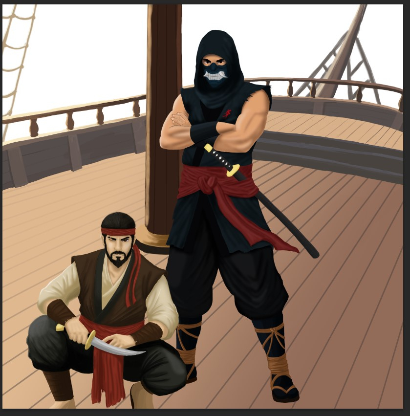 Ah depuis le temps que je te pousse à la faire je suis content que tu aies passé le cap du post ! Je préfère ton personnage sans chemise (ça t'arrange non ?). Pour qu'il fasse plus pirate je lui mettrai un couteau où quelque chose comme ça. Pour ta première participation et tes premiers dessins tu as raison de poster tes recherches et tu verras il y a beaucoup d'entraide ici n'est-ce pas @Spartan de DPS