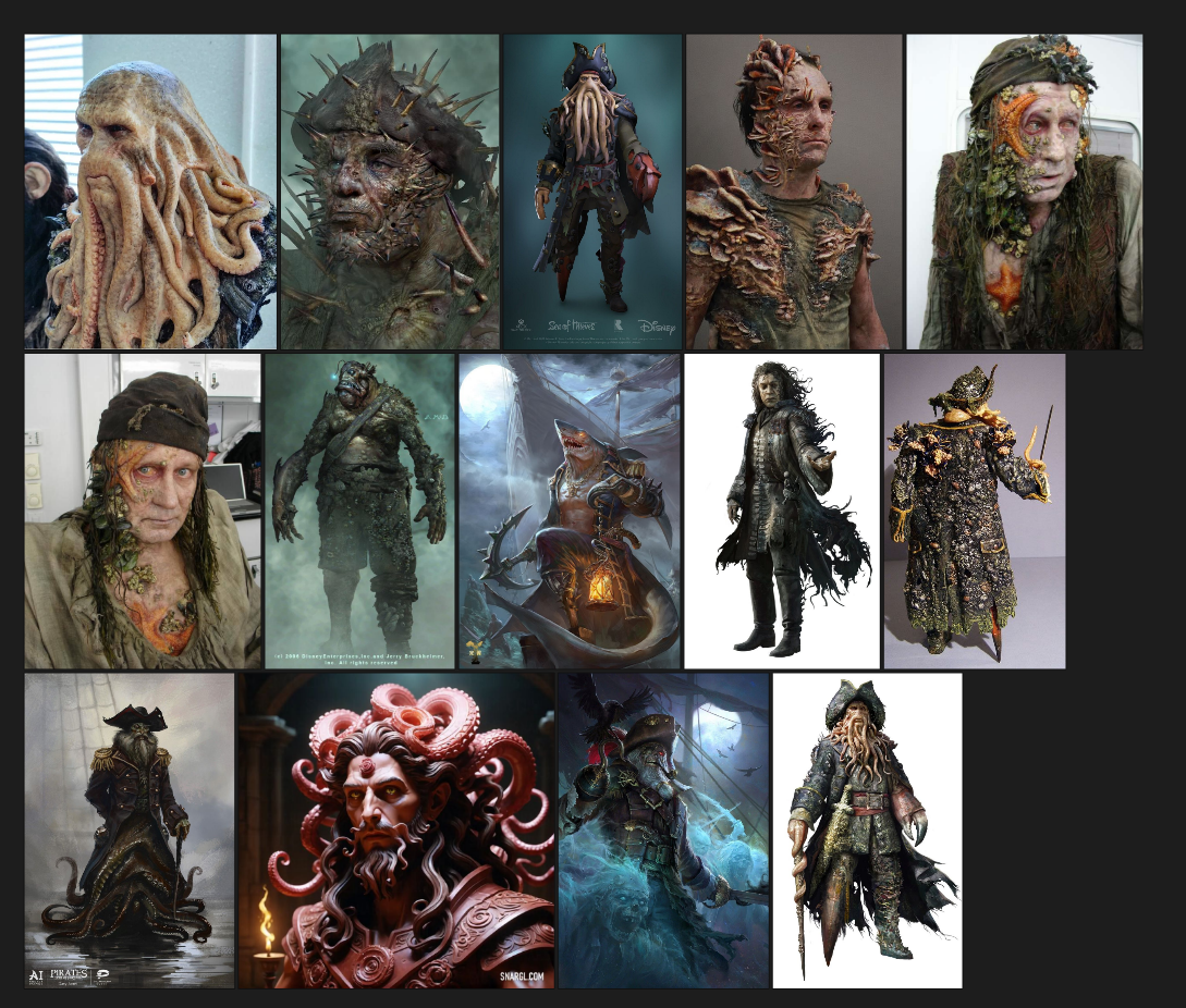 Hello, voici un deuxième personnage que je compte faire pour ce challenge. J'ai essayé de trouvé le plus d'éléments possibles pour renforcer son côté géant, dark et fantomatique. Et dans cette partie, voici mes premières recherches pour renforcer le côté maudit, animal marin et fantastique: - Hier