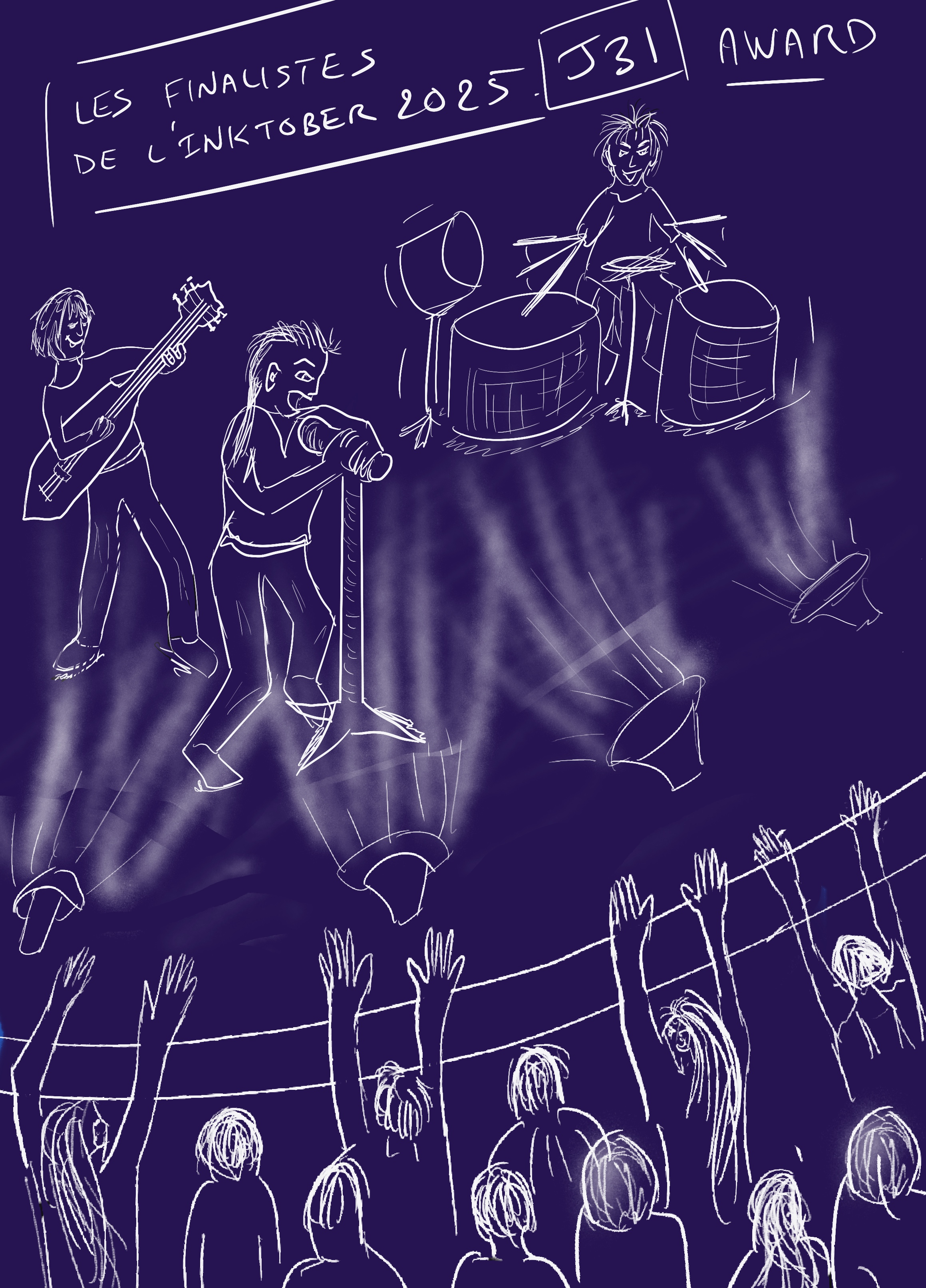 JOUR 31 (DERNIER JOUR !) : Récompense / AwardImage.In.R a répondu à un sujet de Chaz dans Inktober 2025 Bravo à tous, je reviendrai plus tard pour faire mes commentaires. C est mon premier InkTober et merci à tous pour votre bienveillance et de m avoir fait rire, c est precieuuux ! Je n ai pas fait tous les jours mais je suis contente d avoir tenu jusqu au bout. Je suis consciente que mes dessins sont très simplifié comparé à ce que peuvent faire certains mais je me suis bien amusée c est le principal. Belle soirée d Halloween à tous. pour ce jour ce sera un groupe de musicien pour vous récompenser de vos œuvres!