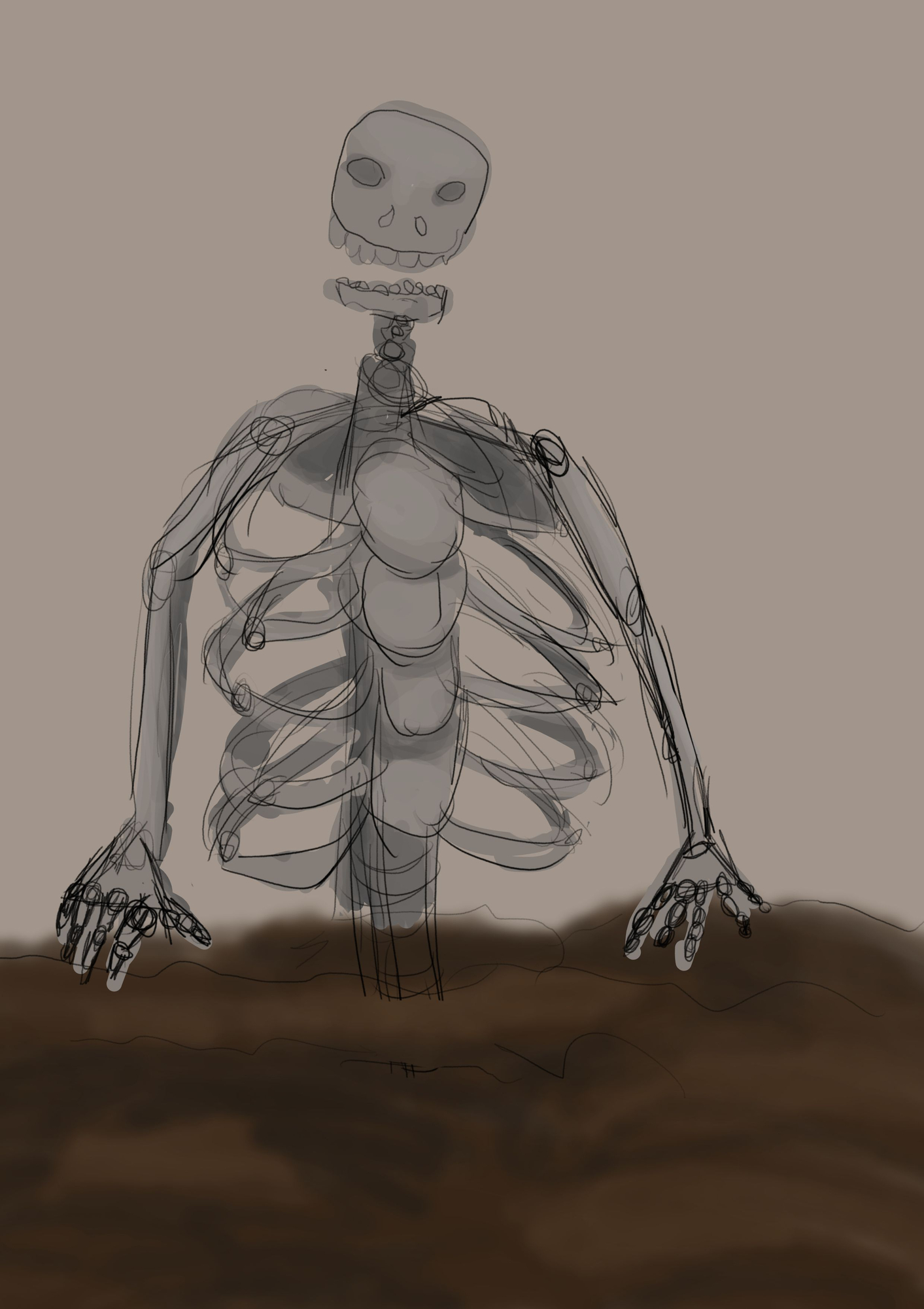 NEED HELP 😭!!! Hello à tous! Javance doucement mais je suis en galère de composition ( débutante en la matière). Voila mon dernier croquis mais il manque de profondeur et relief sur l arrière plan, je arrive pas à bien construire le dessin, dans l’idéale j’aimerais faire d autres morceaux d os. J’attends vos retours et votre aide précieuse les experts!!! Merci à tous!!!! MC