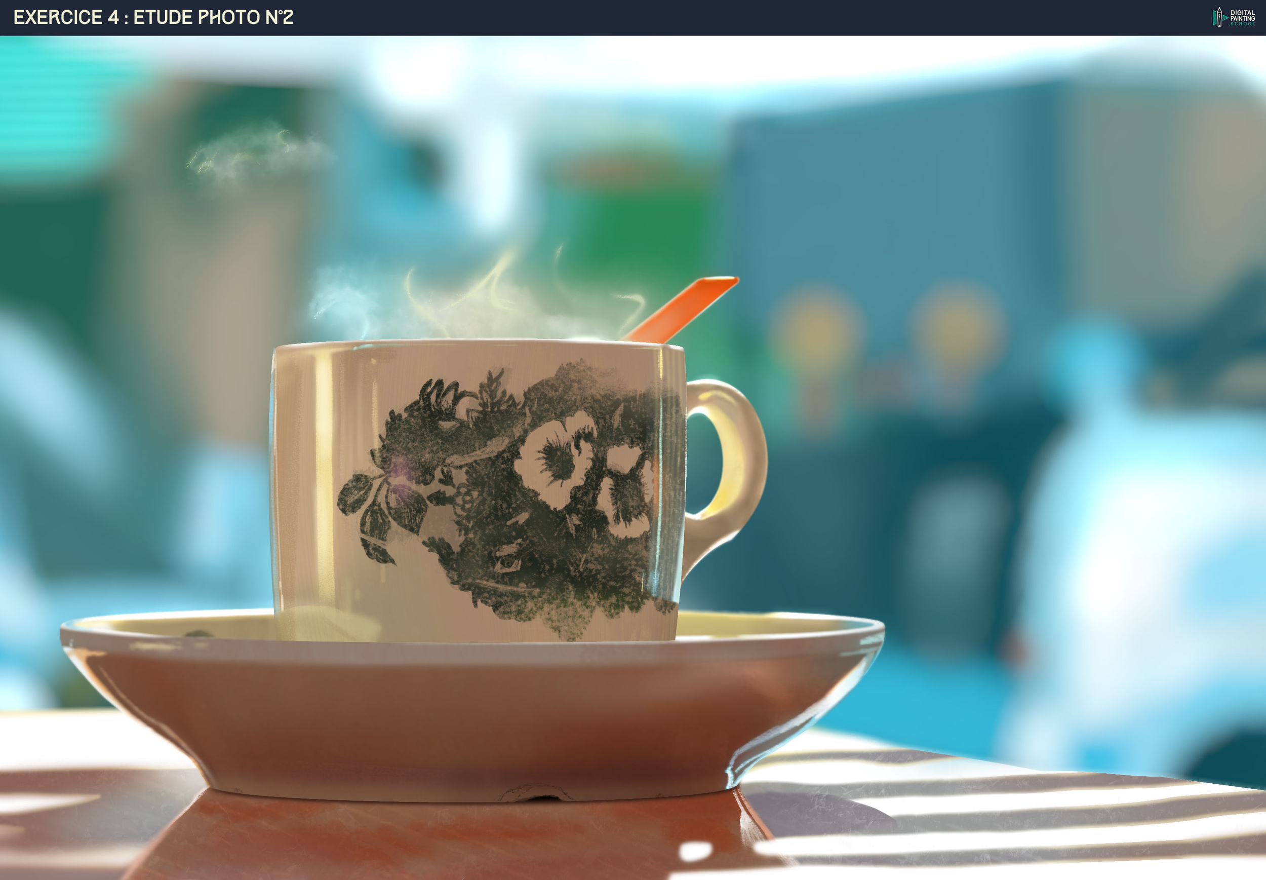 Hello hello ! Voilà pour l'étude photo de la tasse sur laquelle j'ai bien galéré !! Je suppose que c'est normal mais je l'ai trouvé bien plus difficile, arriver à décomposer les couleurs et les reflets c'était vraiment pas évident pour moi 🫠 Exercice 4 :