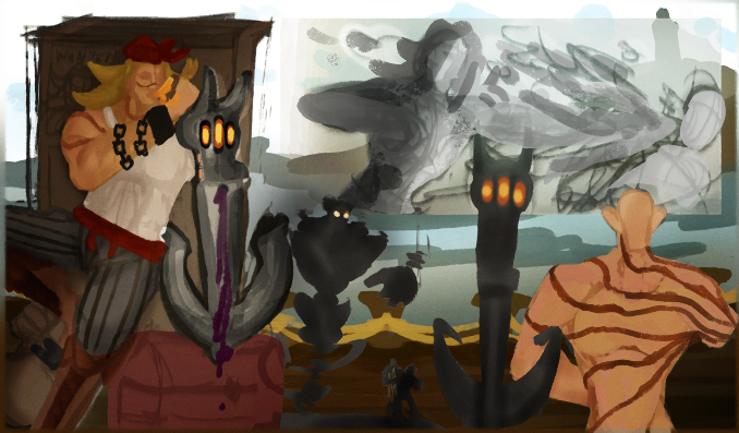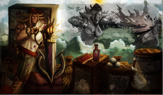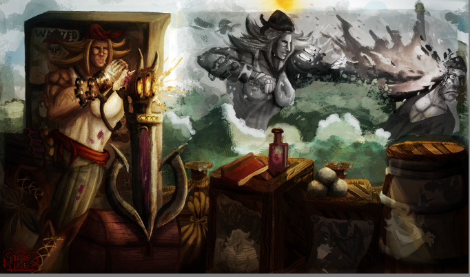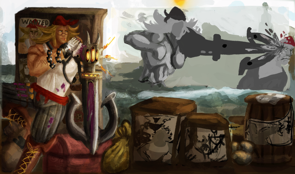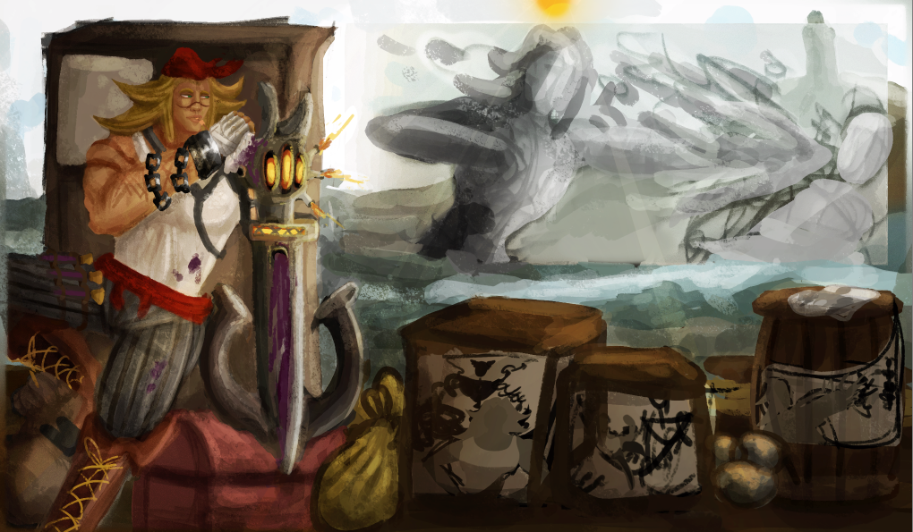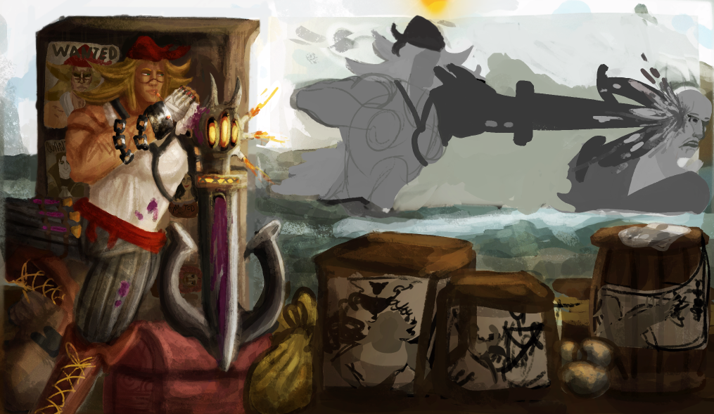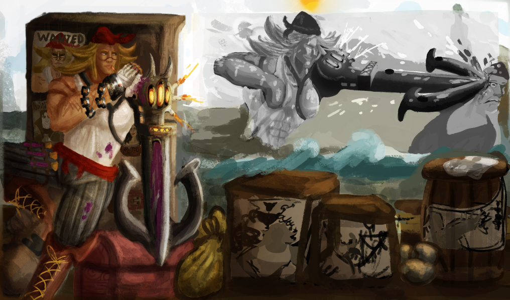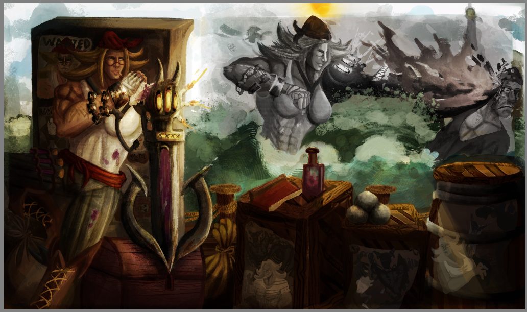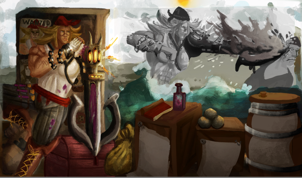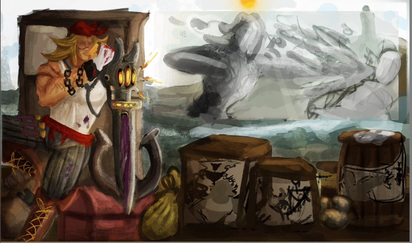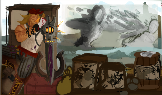 Perso la 3e a plus le cote pirate, c est celle que je prefere. La 2e est la plus elegante mais le coté pirate ne ressort pas beaucoup. Je suis partie sur Katryna aussi mais un autre style, j aime beaucoup decouvrir ce que d autres personnes font sur un meme sujet. Ton idee me plait bien, hates de voir la suite. bon brush. -