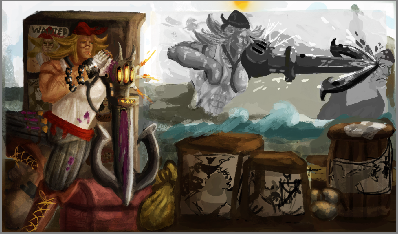 Salut tout le mondes !! je suis parti sur le design de Katryna, d’origine asiatique / japonaise, je trouvais ça intéressant de mélanger la beauté de la culture japonaise, à la piraterie ! voilà mais 3 premiers design, J’aime bien les trois donc jsp vrm lequel choisir je compte sur vous pour me faire part de vos avis !! et sinon je ferais sûrement un mélange en prenant dans chaque, les éléments que j’aime le plus ^^