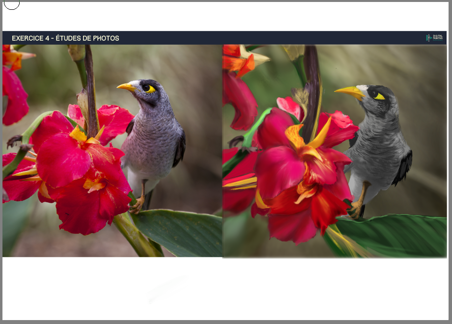 Salut @coz_art, Excellent travail sur tes différents croquis. C'est une des plus belles planches que j'ai eu à voir pour cet exercice ! Pour les oisillons, c'est solide dans l'ensemble. 2-3 petites choses à relever malgré tout : Cette patte là du petit oiseau me semble un peu trop grosse/massive. Surtout comparée à l'autre. Au niveau de son bec, il est un poil court, surtout pour la partie supérieure. N'hésite pas à épaissir un chouia sa partie inférieure au passage d'ailleurs. Pour le grand oiseau, je te conseillerais de réduire globalement la taille de son bec et de le rendre légèrement plus "long". En plus de ça, essaye de remonter un petit peu tous ses éléments du "visage". Actuellement, ça donne l'impression qu'il n'a quasiment pas de "cou". Le reste fonctionne très bien sinon. Bonne continuation 👍