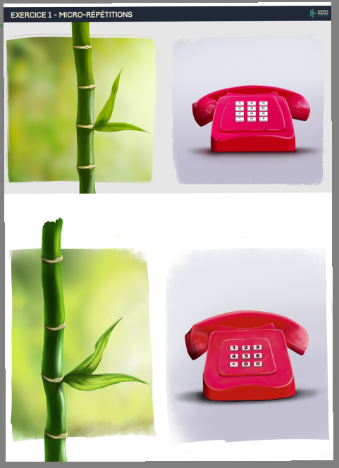 Salut @Marcassin, Tu peux remplacer "plan" par "emplacement dans ton image" si jamais 👍 Ce qui est intéressant avec la notion de plan, c'est que ça transmet aussi l'idée de "proximité relative" et donc de profondeur. Bon travail de correction en tous cas. Que ce soit pour l'épaisseur de ligne ou pour la tangente, tout est en ordre ici 👌