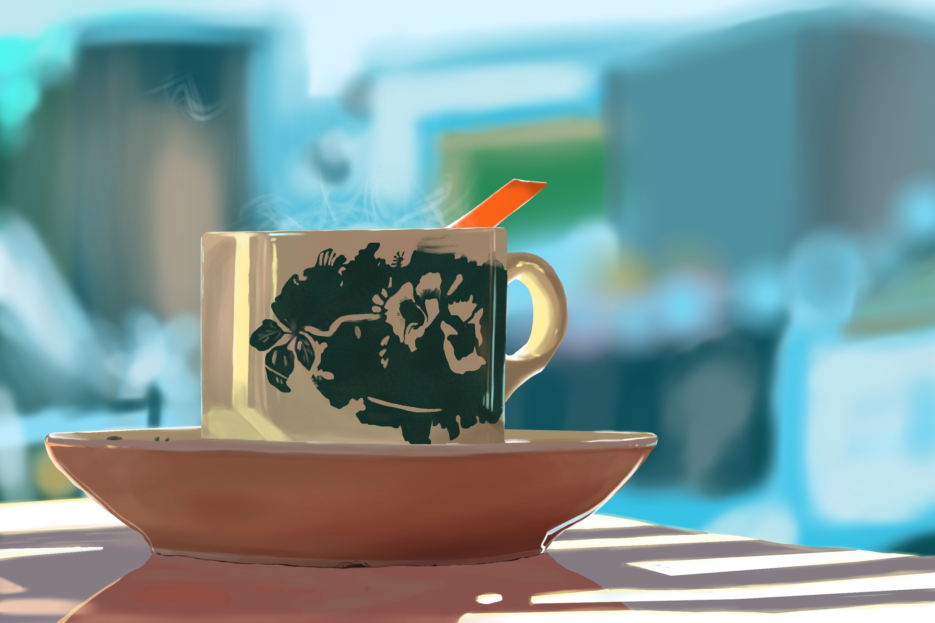 Bonjour, merci beaucoup pour les retours sur les derniers dessins. ☺️ Je reviens avec l’exercice sur la tasse, je sais qu’il n’était pas obligatoire mais j’ai voulu le faire quand même. En revanche je me suis pas imposé de faire le logo avec les fleurs dessus j’avoue ! L’exercice était assez compliqué au niveau des reflets car je trouve que ça fait vite « fictif » si on peut dire.. je suis preneuse de vos retours et je passe à la suite en attendant. belle journee / soiree -