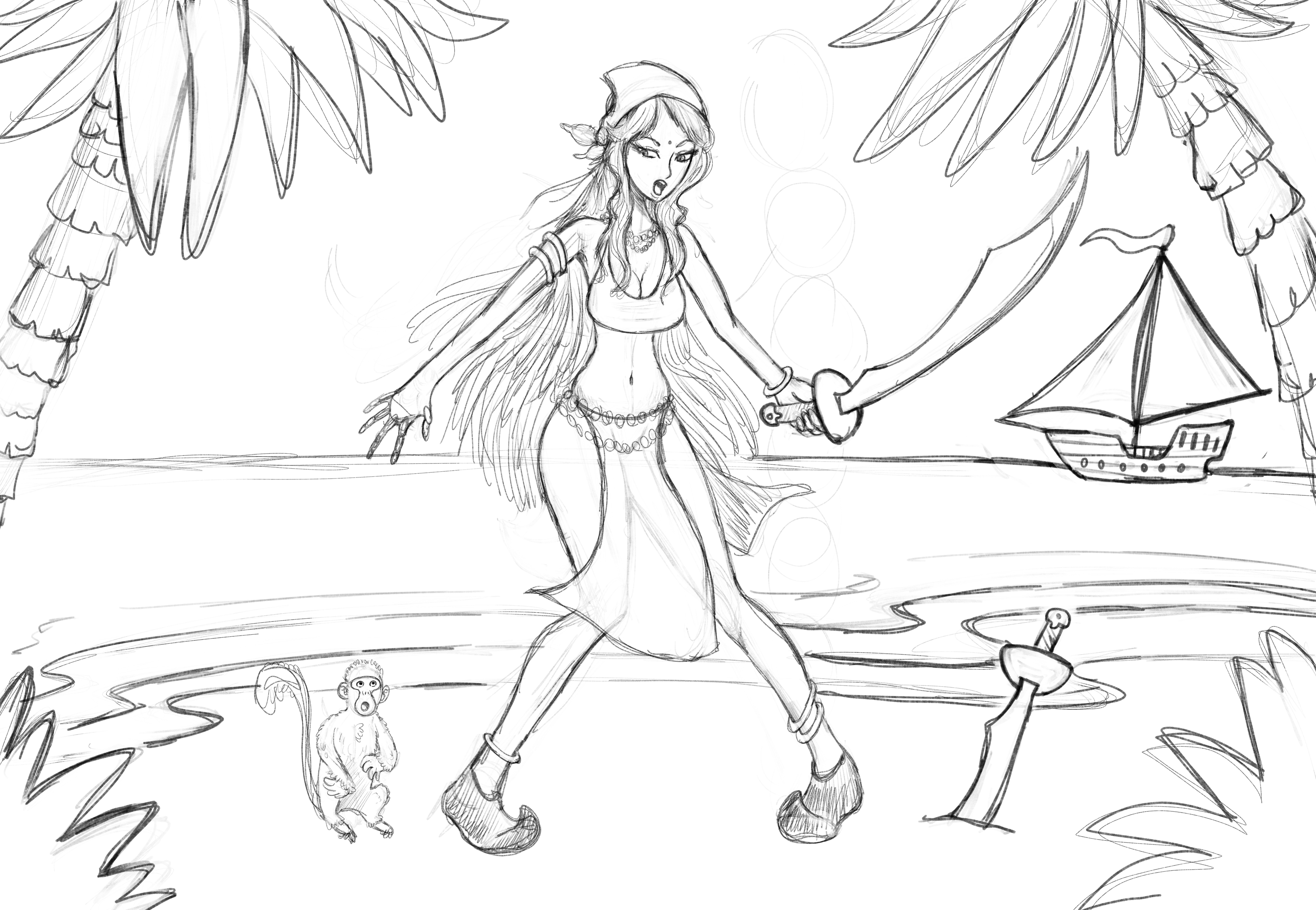 Pour évaluer le niveau de "départ"... Étant très motivée par le challenge pirate mais clairement pas capable de faire 2 illustrations en si peu de temps, j'ai décidé de faire d'une pierre deux coups et de faire de ma participation au challenge #20 mon dessin étalon avant l'arc de progression véritable. En vrai, j'ai déjà hâte de la refaire dans 1 an 😄 Comme le personnage m'a bien plu, il est pas impossible qu'elle fasse une petite apparition guest star dans mon univers personnel (qui est assez fantasy-steampunk avec magie et pirates, donc). Je réalise que les ombres et lumières, c'est vraiment pas ma tasse de thé à l'heure actuelle hahaha xD mais au moins je sais déjà que je ne peux que progresser 🙂 -