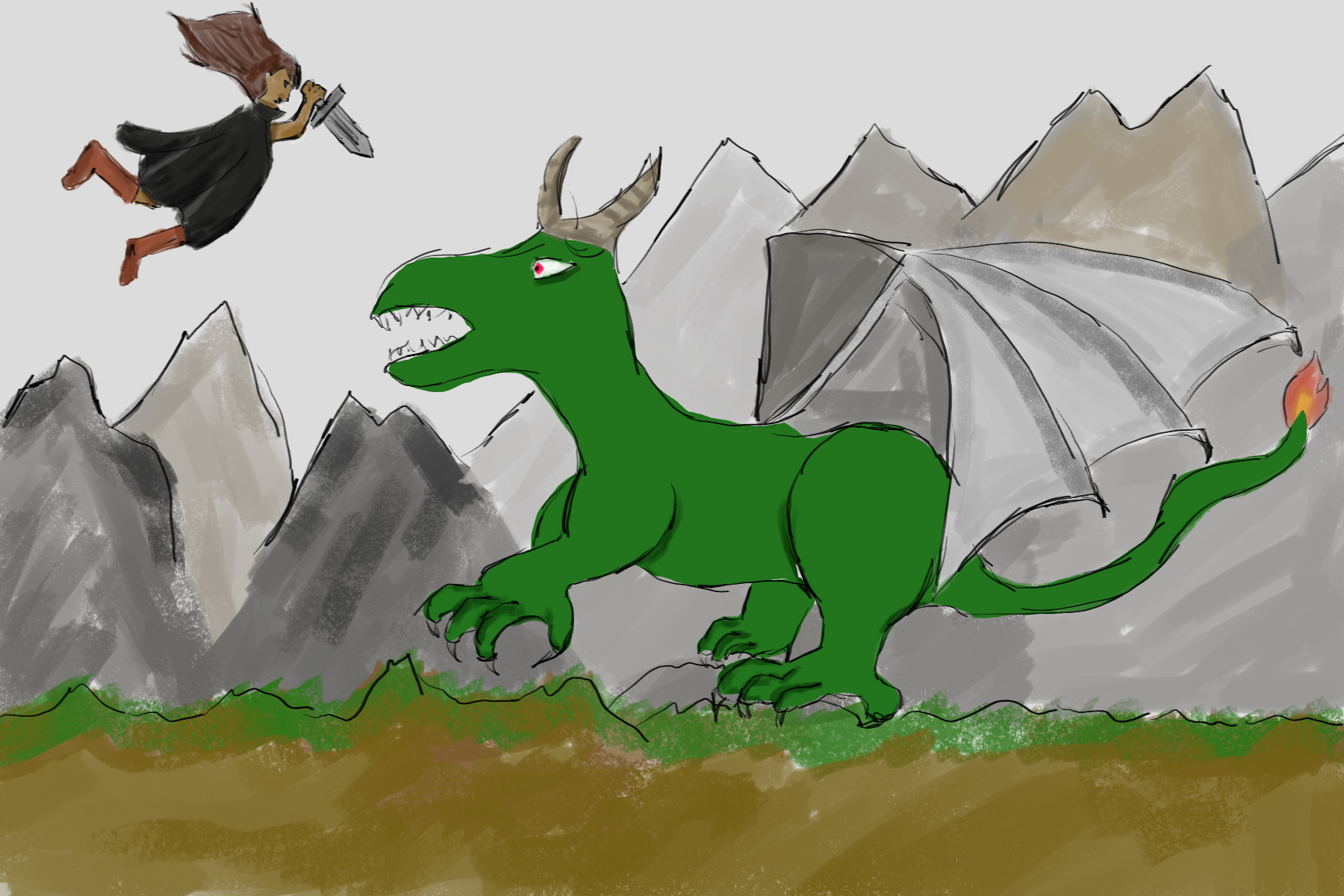 Bonjour à tous et bonne année ! J'étais déjà inscrite à ce cours il a maintenant 5 ans, j'avais déjà fais ces étapes, mais la vie m'a rattrapée, pas mal de problème perso qui m'ont fait arrêter... Mais, j'ai décidé que 2026 serait l'année où je m'y remettrait ! Et donc me revoilà, partir de from scrach. On va pas se mentir, je n'ai pas beaucoup gardé de ma première XP, et je me suis attaqué à tout ce que je ne maitrisais pas : le dessin d'imagination (je gère un peu mieux avec des références), les poses, la profondeur, les paysage, les dragons (on dirait un mix dino, dragon, et quelque chose que je n'assume pas trop...). Je me suis arrêté là, donc très loin de la fin parce que je sais pas je ne suis pas du tout à l'aise. Mais c'est des scènes de ce style que j'aimerais réussir à faire à la fin, donc... autant faire un comparatif. Bref, voici mon truc atroce que ma petite soeur aurait pu faire... sachant que je n'ai pas de petite soeur 😄 Merci !