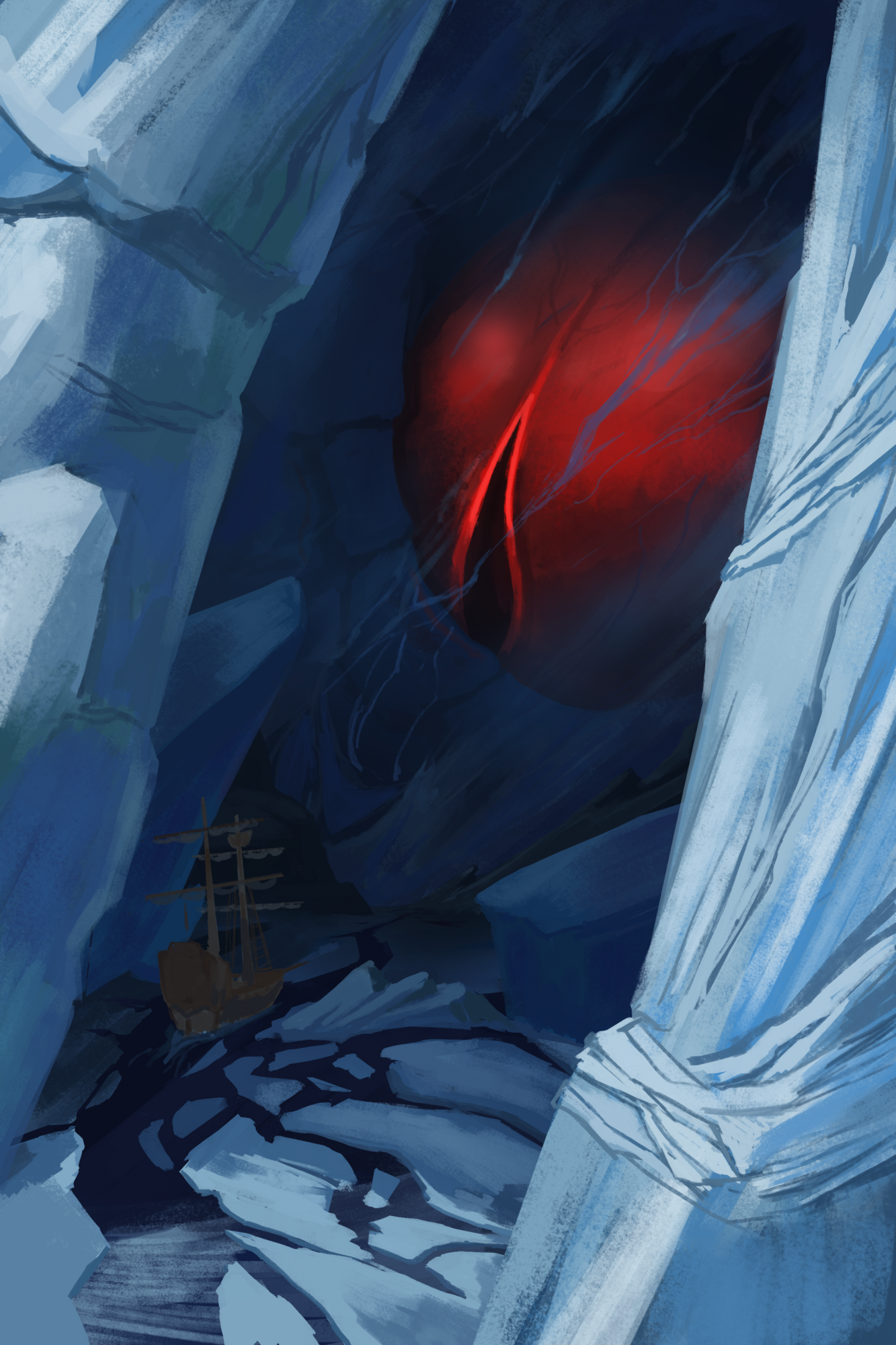 j ai essayé d atténuer les vagues qui étaient trop régulières, je vais sûrement les modifier pour ajouter des courants contraires. En attendant j ai ajouté les ombres et remis au propre les coulés de lave. Voici également un projet pour une 3 e illustration si j ai le temps. Le kraken ensorcelé par Katryna qui lui remet le trésor en gage d amour.