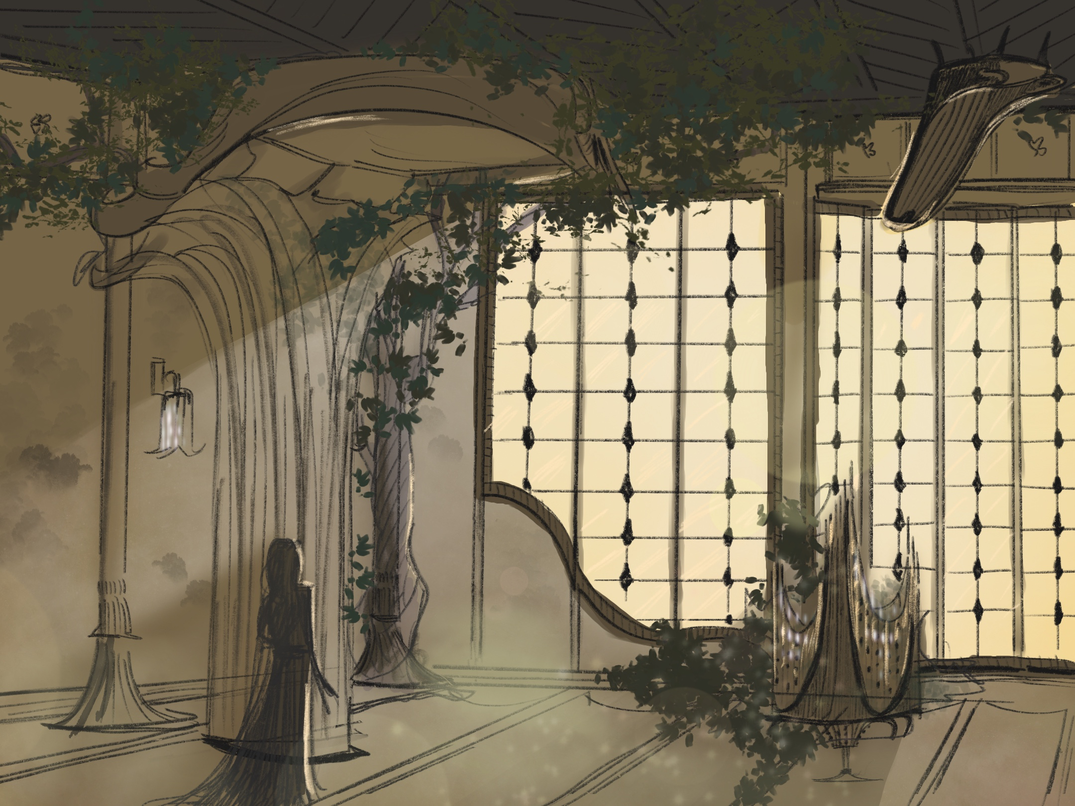 La compo est top, j’aime beaucoup, ça peut faire une illu canon. Tu devrais décrocher tes éléments du bord supérieur de ton image, ça permettra à ton illustration de mieux respirer. Tu devrais hiérarchiser aussi tes différents plans pour bien les séparer et donner de la profondeur. mais franchement c’est top, hâte de voir la suite