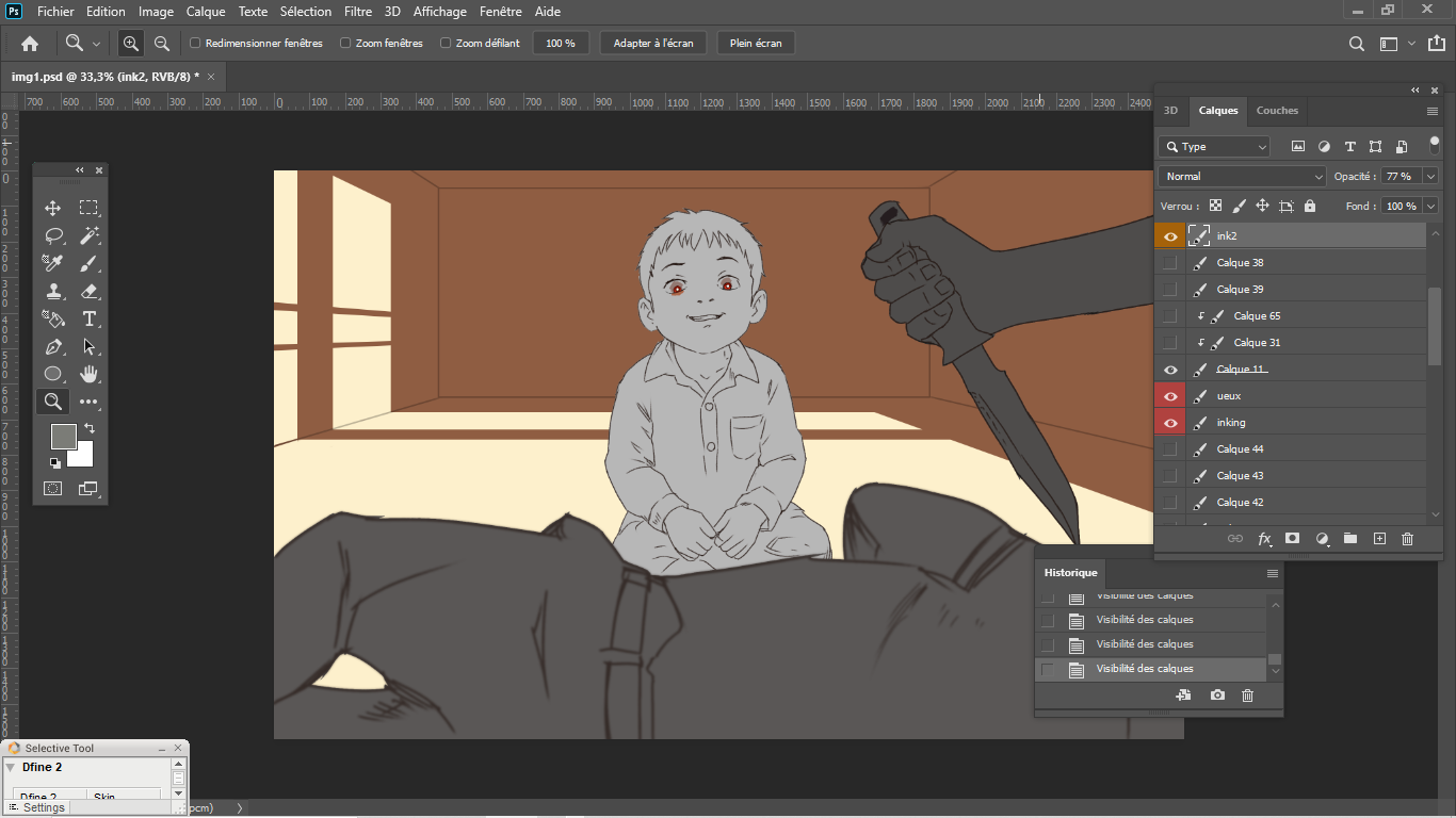 14. Ça fait un moment que je n'ai pas posté. Je travaille toujours sur mon gros projet d'animé depuis 5 ans. J'en ai marre, mais j'arrive au bout et j'ai hâte de voir le truc démarrer ! Bref, en attendant, je m'occupe avec un autre projet. Je prépare 10 images clés pour une histoire ésotériko fantastiko cosmique et plastik , le début est assez trash (prologue). Voici la préparation de celles-ci, je les posterai plus tard dans la galerie. Prologue + image 1
