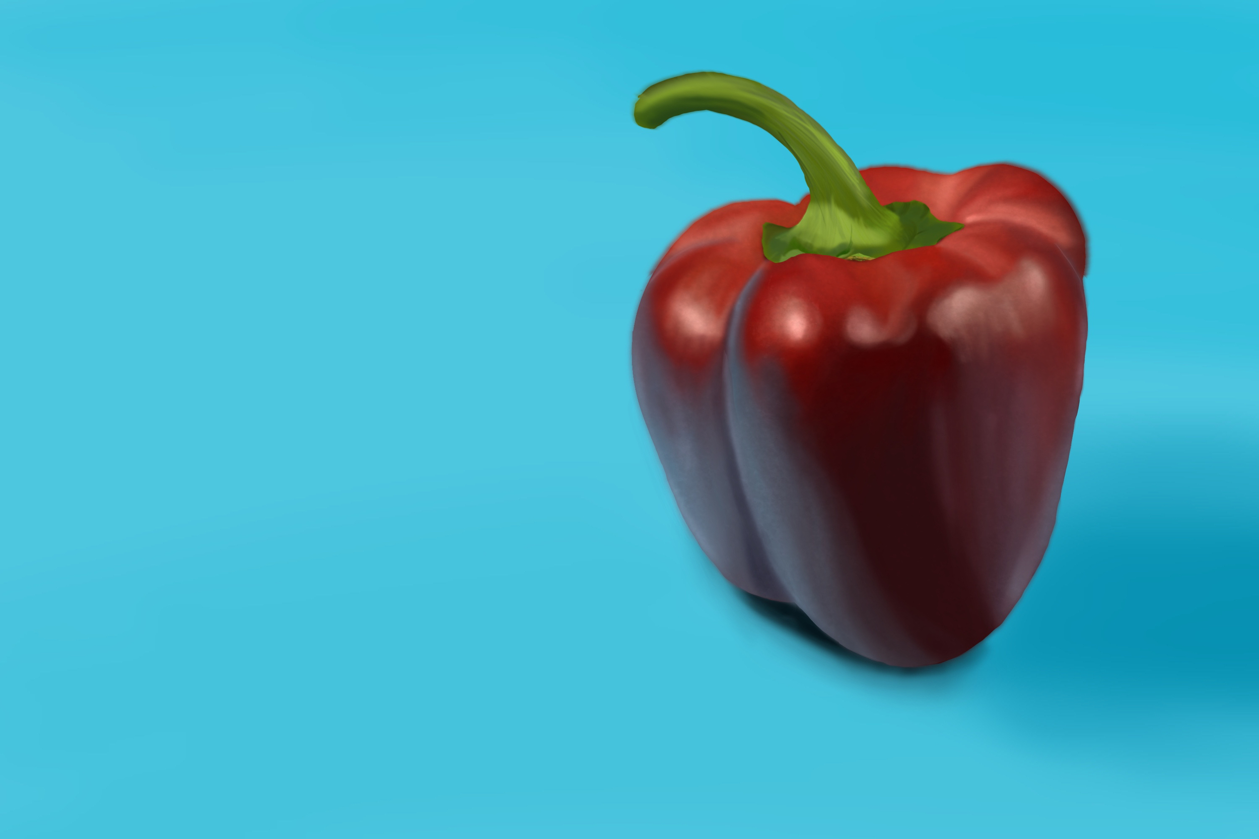 Salut @el_oi_se super ton poivron !deux trois chose a corriger : -tu peux ajuster sa forme globale , cette partie la devrait se trouver plus bas comparé a la partie gauche de ton poivron , fais attention aussi a ton ombre , tu as une partie noire parasite ici tu peux atténuer ce reflet ici -ici hésite pas a rester sur un bleu clair sur ton reflet , pour le moment tu as quelque teintes en plus qui parasite un peu ta couleur -de l'autre côté ici tu peux rajouter des reflets de couleur bleutées pour délimiter tes volumes 😉 - -sur cette partie ça manque de rouge plus lumineux pour ajouter plus de volumes voila sinon c'est good ¨Pour la rose c'est vraiment bien aussi juste des chose a corriger : -ta feuille ici est bcp trop grande et allongée vers la gauche , tu dois la réduire vers la droite et tu peux améliorer ses nervures aussi , pour le moment elles partent un peu dans tout les sens alors qu'elles devraient avoir toutes la même direction et partir du centre vers la gauche -la tige de ta rose ne devrait pas être dans la lumière jusqu'en bas , la partie basse est a l'ombre -tu peux venir atténuer les nervure sur ce pétale , c'est un peu trop prononcé pour l'instant -attention a ton ombre violette ici elle est un peu trop contrastée 😉 - voila j'espère que ça t'aidera , c'est bien continue comme ça ;:)