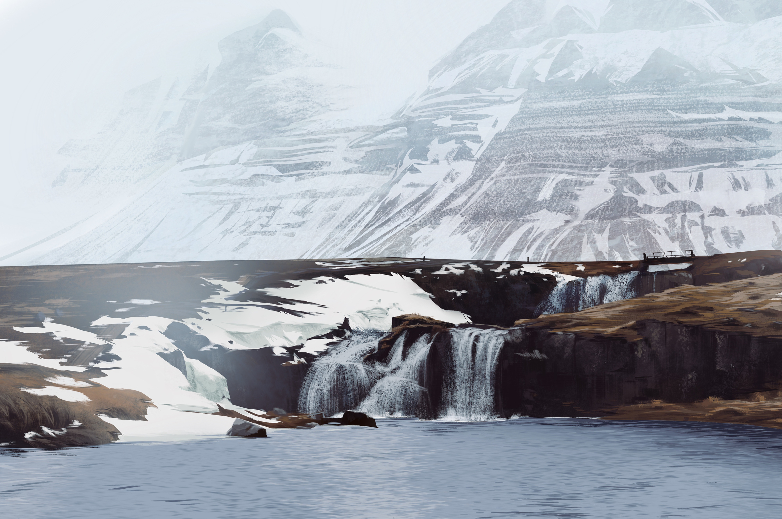 Bonjour ! merci pour ta correction @Djayk C’est parti pour l’exercice 3 ( 6h30 ). Je ne m’en sentais pas capable au tout début quand ça ne ressemblait à rien ( le lasso sur procreate est un enfer ) et regarder la méthode de Spartan m’a rassurée. C’est ensuite devenu un plaisir. Merci pour le pack de brushes, il y a vraiment des incontournables ! Je crois que je pourrais pousser plus loin les détails de la montagne, j’ai du mal à jauger quand est-ce que ça fonctionne suffisament.