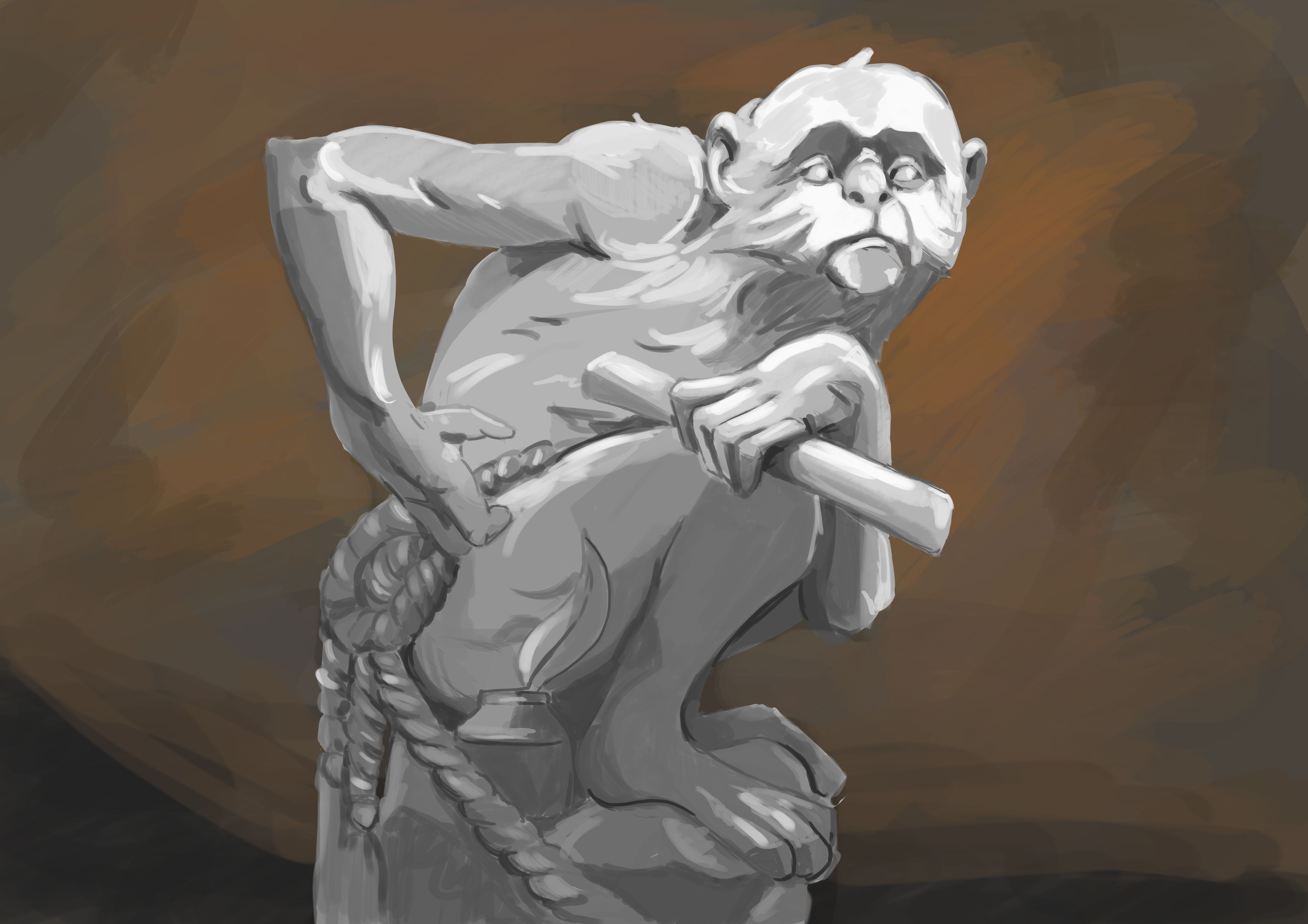 Bonjour, je me présente, je m'appelle Ludovic, je suis quelqu'un qui est passionné de dessin depuis très longtemps. J'ai découvert Digital Painting School et je me suis dit pourquoi pas essayer le premier exercice du programme indispensable. Avec l'illustration de singe, j'ai voulu montrer où j'en suis dans le dessin, que ce soit les valeurs ou même la manière de travailler. Je manque de pratique, ça se voit, j'ai toujours appris seul avec des tutos sur internet. J'ai un but, c'est de pouvoir raconter des histoires avec mes dessins. Bonne journée à vous. -